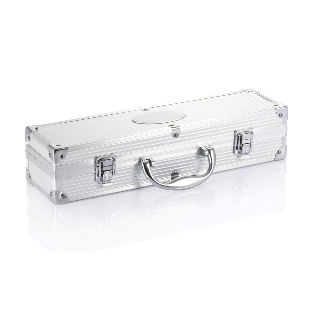 3tlg. Edelstahl Grillset, inkl. Bratenheber, Grillzange und -gabel mit Schutzhülle, Set konfektioniert in Aluminiumkoffer.