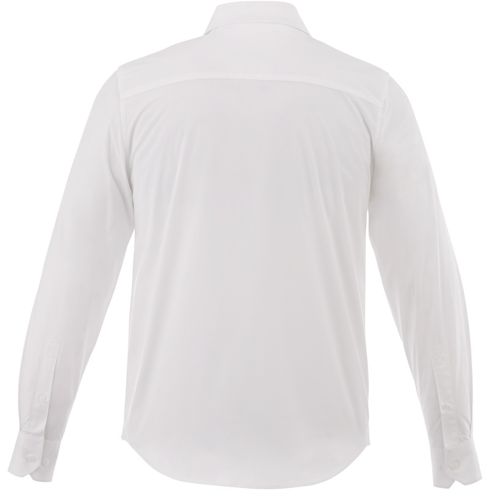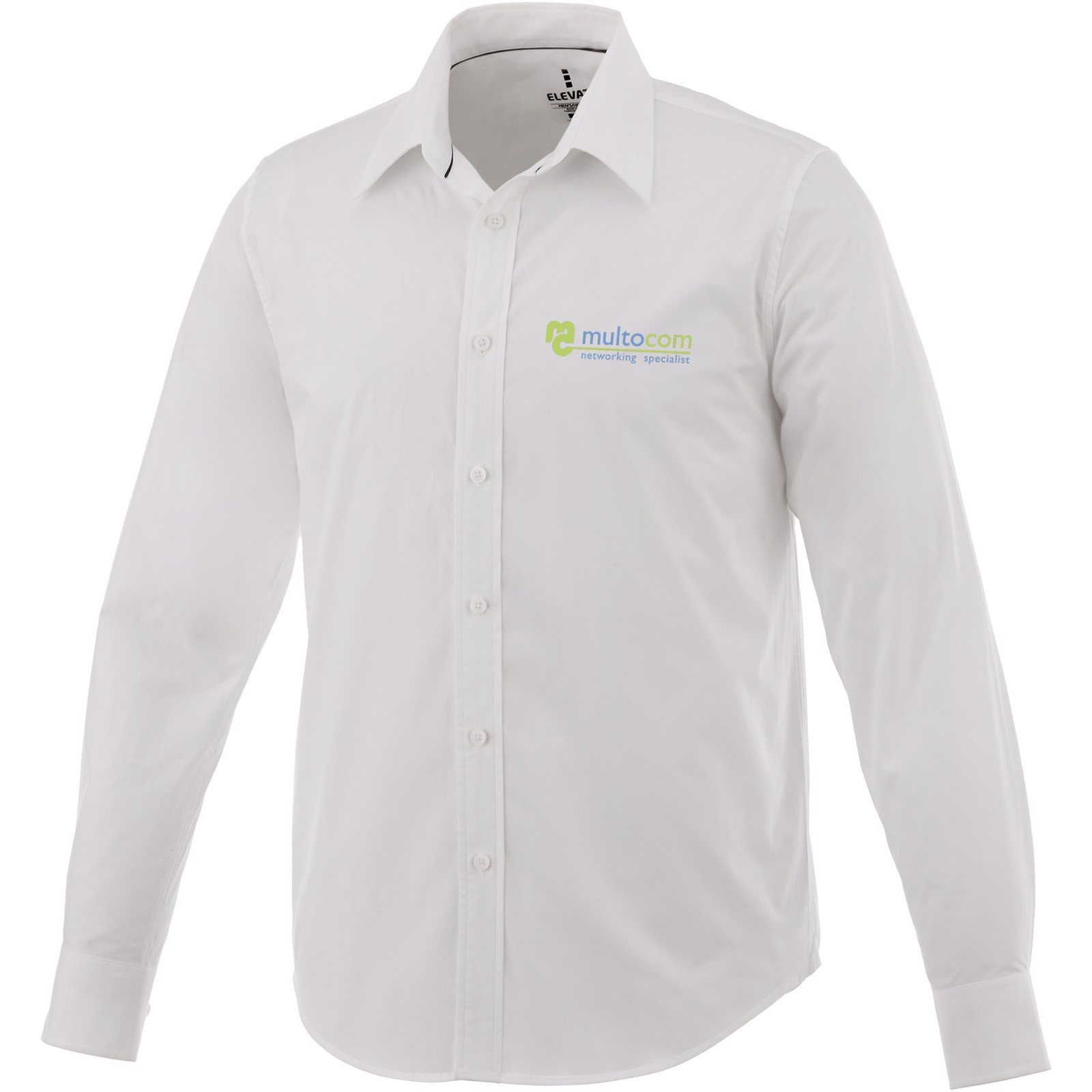 Button-Down-Kragen mit verdecktem Knopf. Stetch-Material. Mit Knopf einstellbares Bündchen mit Falte. Satin Nackenband. Gravierte Ton-in-Ton Knöpfe. Transfer Hauptlabel für den etikettfreien Komfort.