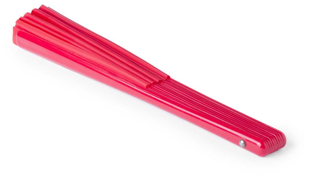 Maxi size fan with plastic ribs and polyester fabric. In assorted colors and presented in an individual box.