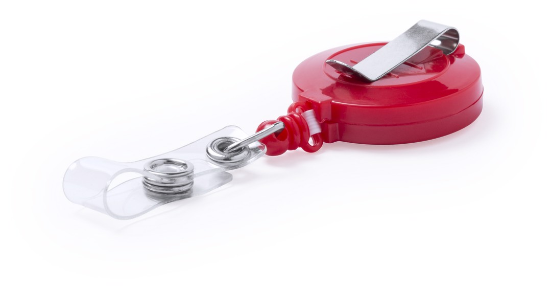 Accreditations holder with carabiner closure and metallic clip fixing in varied colors. With retractable mechanism, includes 1m length strap. Clip and Tape Measure 1 m Included