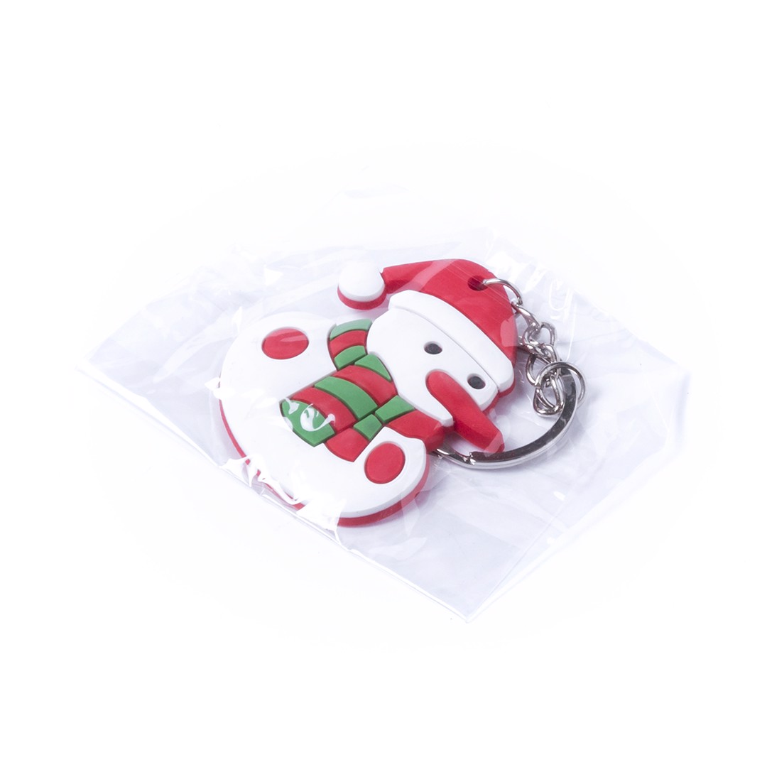 Keychain in soft die-cut PVC with original Christmas designs of Santa Claus and snowman.