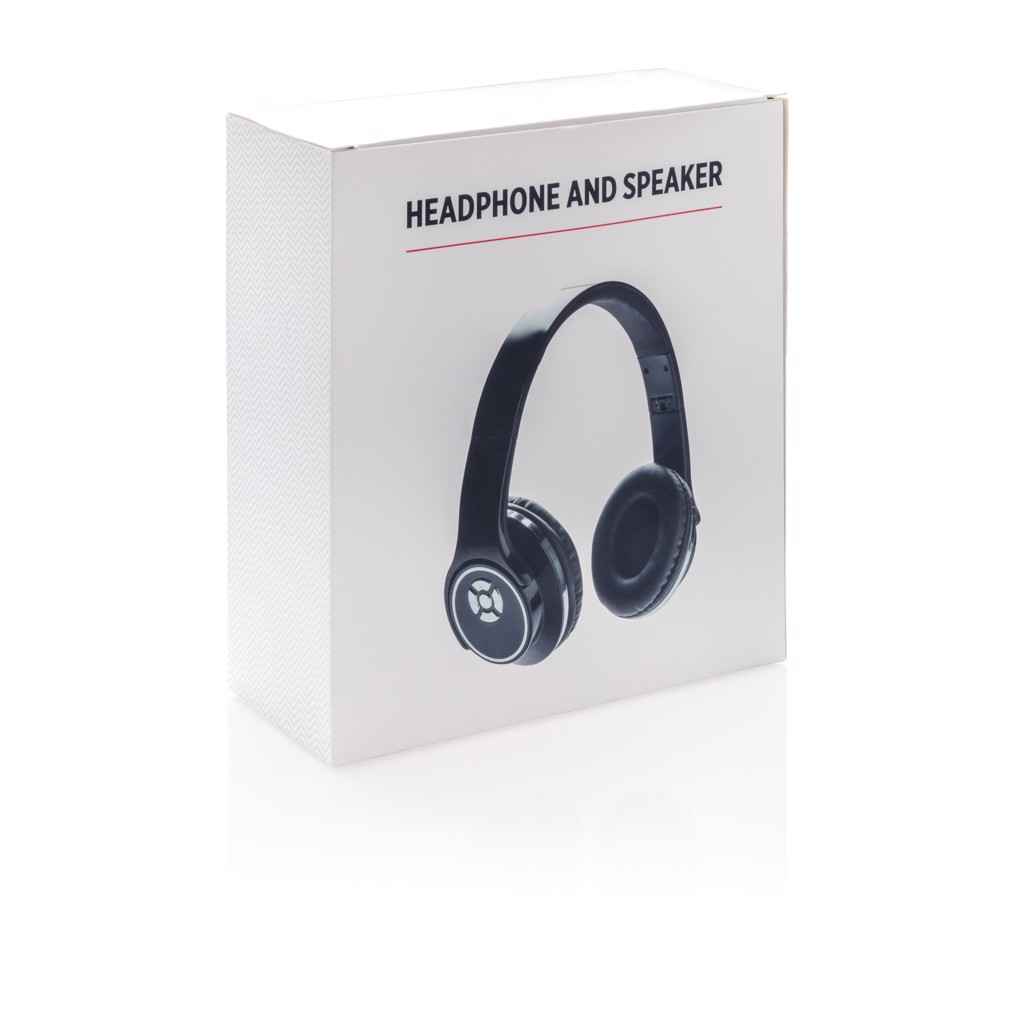 Einzigartiges 2 in 1 Design, welches Kopfhörer und Lautsprecher kombiniert. Der Kopfhörer kann normal für das Hören von Musik gebraucht werden oder als Lautsprecher. Um die Lautsprecher Funktion zu nutzen, drehen Sie die Hörer um und schon verwandeln sich diese in Lautsprecher. Die Kopfhörer/Lautsprecher verfügen über eine integrierte 300mAh Batterie, so dass Sie bis zu 4 Stunden Musik hören können. Inklusive Mikrofon und Abhebefunktion von Anrufen. BT 3.0 Technologie mit einer Reichweite von bis zu 10 Metern. Inklusive Micro USB Kabel und AUX-Kabel. Die Kopfhörer/Lautsprecher sind aus ABS.