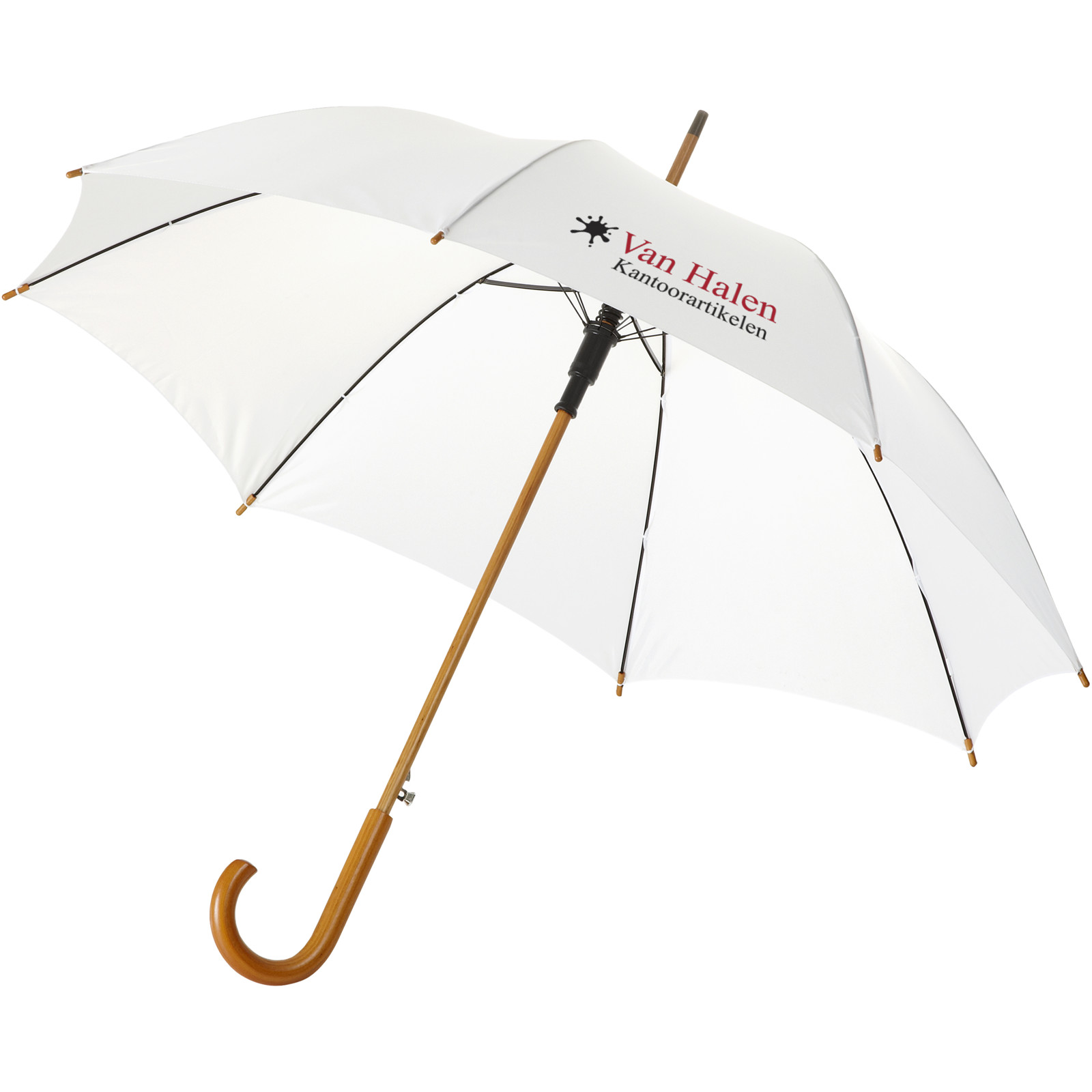 Kyle 23" Automatikregenschirm mit Holzstange und -griff - weiss