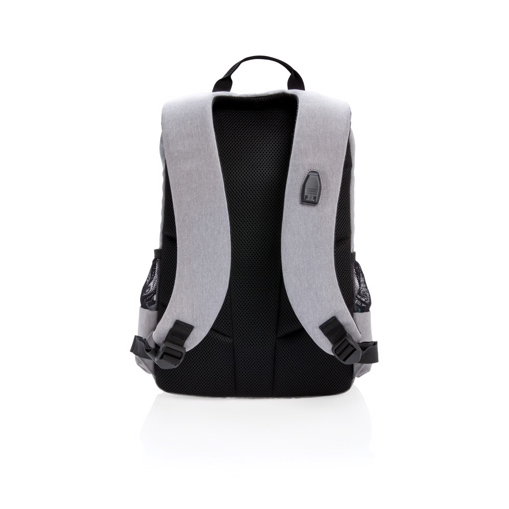 Praktischer Rucksack für alle Situationen mit 2 Seitenfächern für Ihre Getränkeflasche oder Ihren Regenschirm. Mit USB-Ladeport am Schulterriemen, gepolstertem 15,6" Laptopfach und weiteren kleinen Fächern für all Ihre Accessoires, sowie einem RFID geschützten Fach. Registered design®