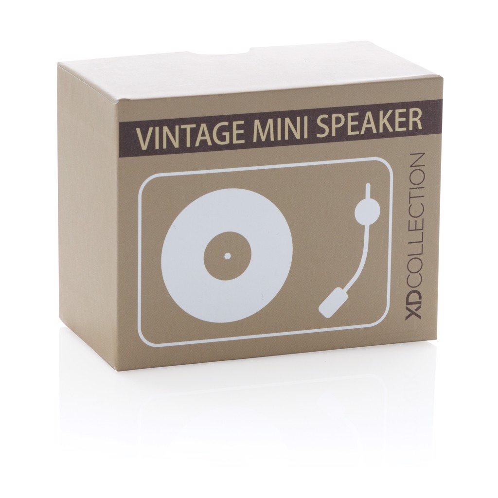 Trendiger kabelloser 3W Lautsprecher aus ABS im Vintage Look-and-Feel. Klarer Sound mit BT 5.0 für eine stabile Verbindung auf bis zu 10m. Die 350 mAh Batterie spielt Ihre Lieblingsmusik bis zu 3h und ist innerhalb von 2h wieder voll geladen. Verpackt in einer Geschenkbox im Vintage-Design. Mit Mikrofon um auch Telefonate führen zu können.