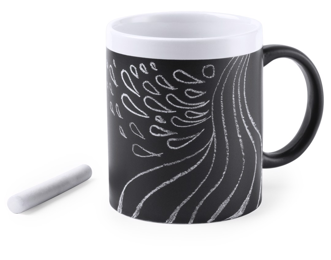 350ml ceramic mug with blackboard blackboard body for painting and mouthpiece in fun range of vivid colors. Chalk included in matching color and presented in an individual box. 350 ml. Individual Presentation. Chalk Included