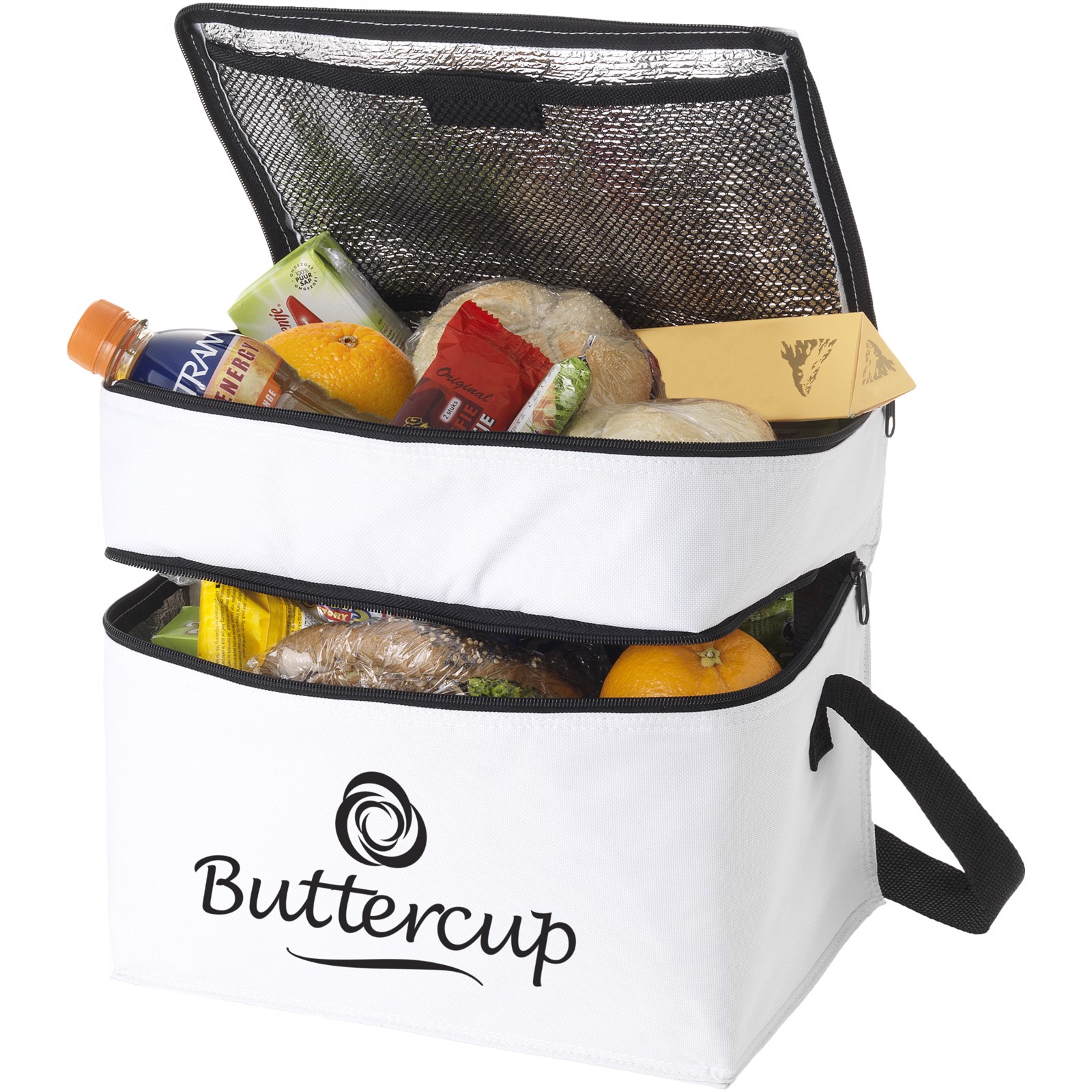 Mit der Oslo-Kühltasche haben Sie jederzeit und überall gekühlte Getränke und Snacks dabei. Die Kühltasche hat zwei separate Fächer mit Reißverschluss. Das obere Fach eignet sich perfekt für kleine Snacks, während das untere Fach ideal für größere Lebensmittel ist. Der Schultergurt ist verstellbar, so dass die Tasche von jedem leicht zu tragen ist. Die Kühltasche besteht aus 600D Polyester, einem strapazierfähigen und langlebigen Material.