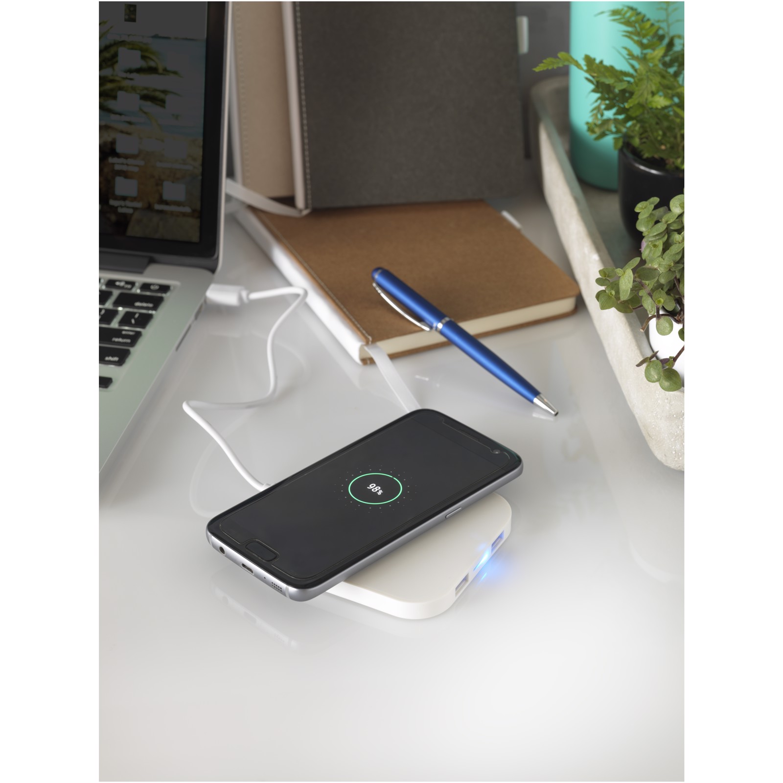 Mit diesem drahtlosen Ladepad können Sie Ihr Smartphone ganz ohne Kabelgewirr aufladen. Verbinden Sie das Gerät ganz einfach mit Ihrem Computer und platzieren Sie ein Smartphone auf dem Pad, um mit dem Laden zu beginnen. Das Gerät verfügt über zwei USB-Anschlüsse und kann somit auch als USB-Hub zum Laden von weiteren Mobiltelefonen verwendet werden. (Keine Datenübertragung möglich) Nur mit Handymodellen kompatibel, die drahtloses Laden unterstützen. Zum Laden von iPhone-Modellen mit Drahtlostechnologie vor iPhone 8 ist eine externe drahtlose Ladeschale/Ladestation erforderlich. Wird in einem weißen Avenue-Geschenkkarton geliefert.