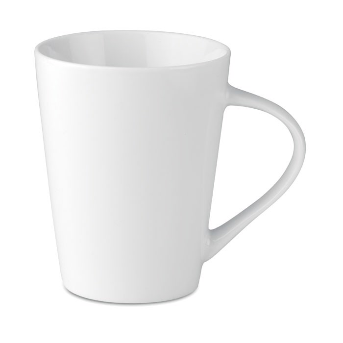 Kaffeebecher aus Porzellan. Füllmenge: 250 ml. Nur Keramik-Transferdruck ist spülmaschinengeeignet. Bulkverpackung.