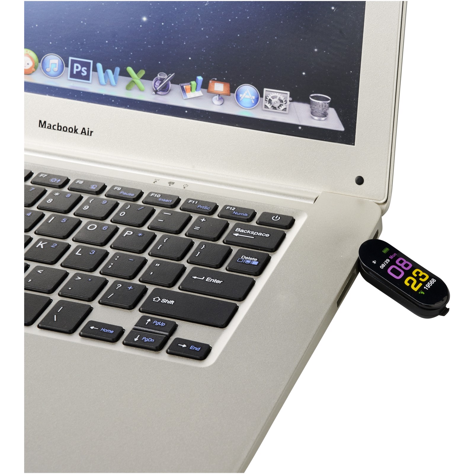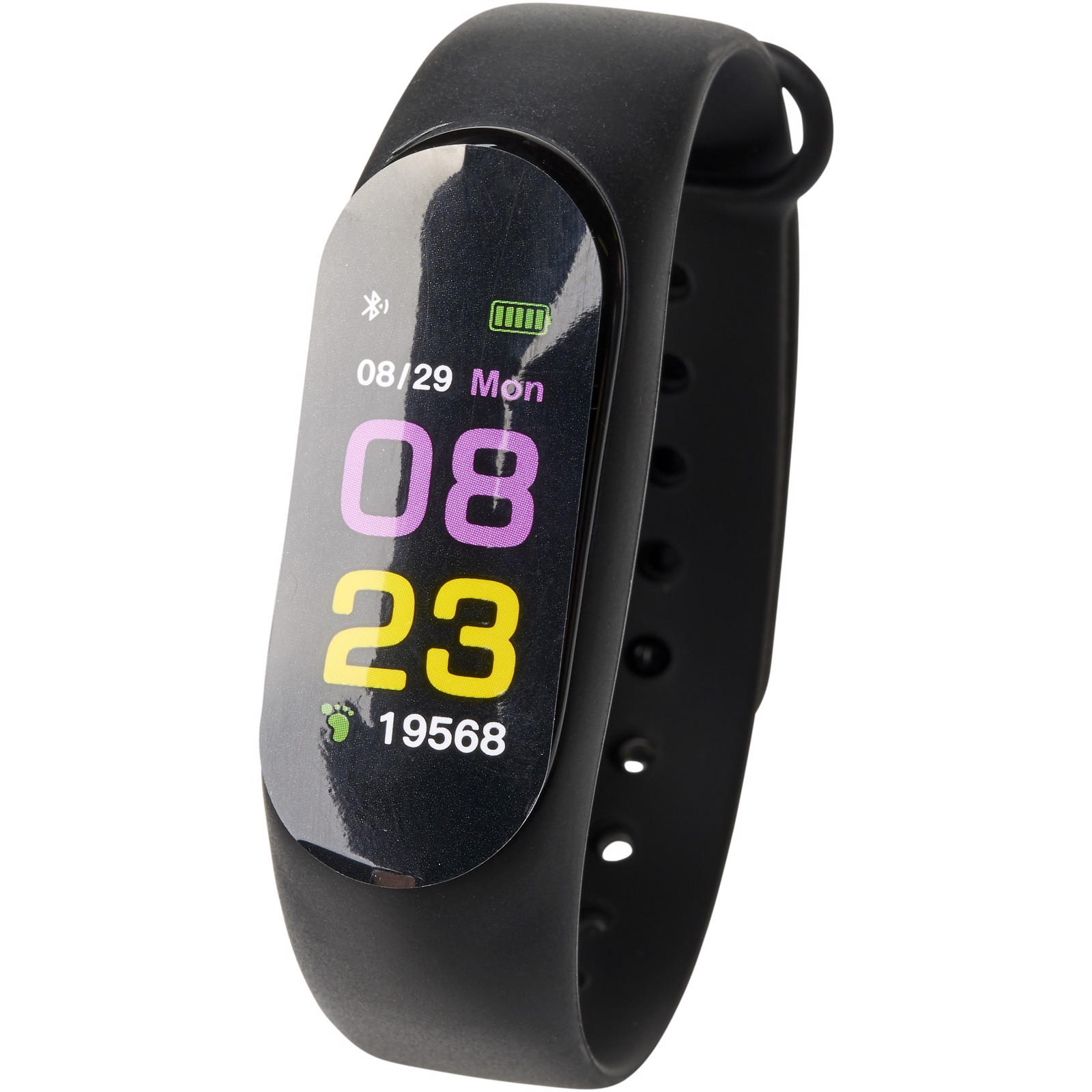Smartband mit Touchscreen TFT 0,96 Zoll und Thermometer. Herzfrequenz, Schrittzähler, Kalorienzähler, Entfernungsanzeige. Schlafqualitätsüberwachung, Anruferinnerung und Pushbenachrichtigungen, Blutdruckmesser. Integrierter Thermometer misst die Körpertemperatur. Bluetooth® 4.0. Kompatibel mit Android 4.3 und IOS 8.0 oder höher. Akkukapazität: 80 mAh. Wird in einer luxuriösen Geschenkbox geliefert.