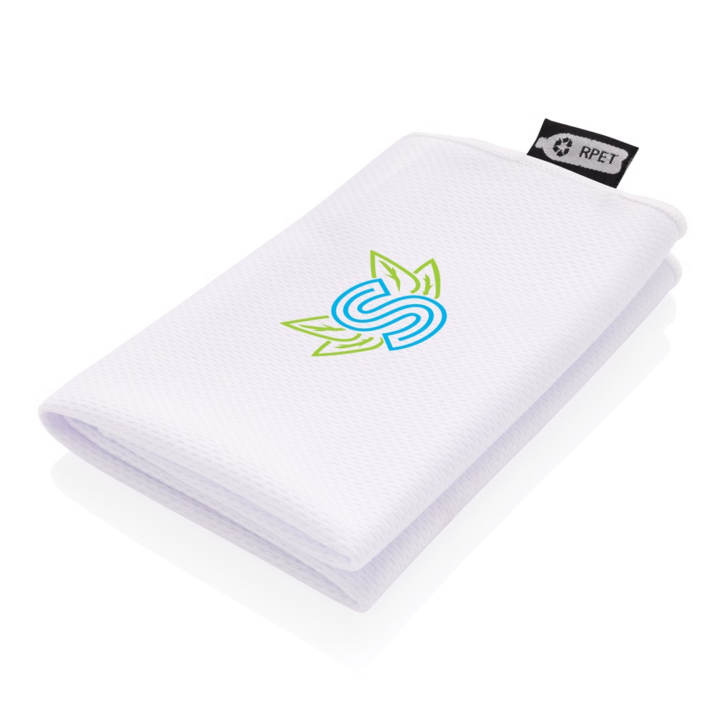 Dieses Sporthandtuch aus RPET mit Kühlfunktion ist im RPET Zu-Zieh-Beutel verpackt. Das Handtuch ist aus 50% recyceltem PET und 50% Polyester gefertigt. Das Täschchen besteht aus 90% recyceltem PET und zu 10% aus PU. Nur Handwäsche geeignet. Größe des Handtuchs: 80 x 30cm; 135gr/m².