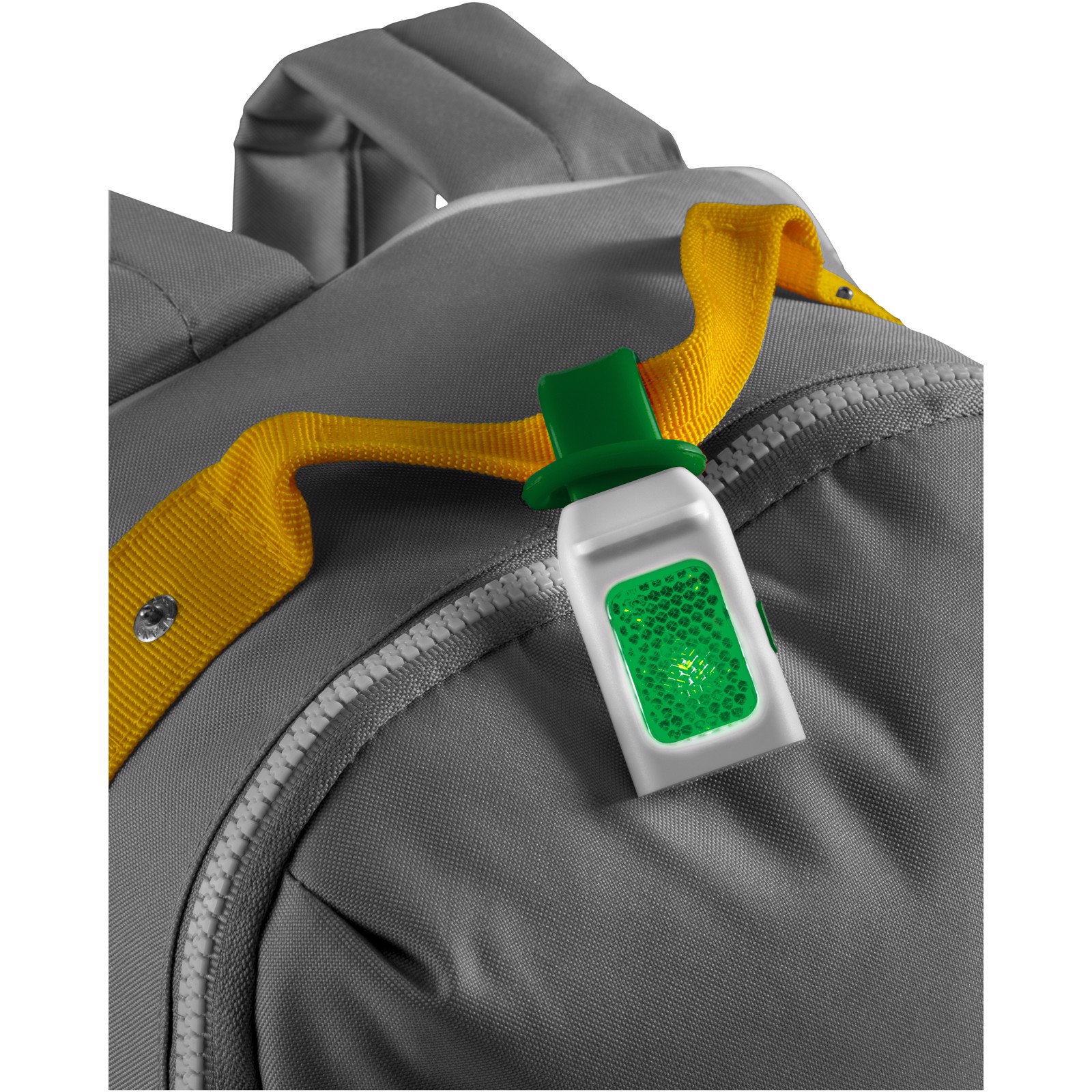 Outdoor-Reflektor-LED Lampe mit 3 hellen, weißen LED und Dauerblinkfunktion mit einer LED. Flexibler Silikonriemen zum problemlosen Befestigen am Fahrrad oder einer Tasche. Inkl. Batterie.