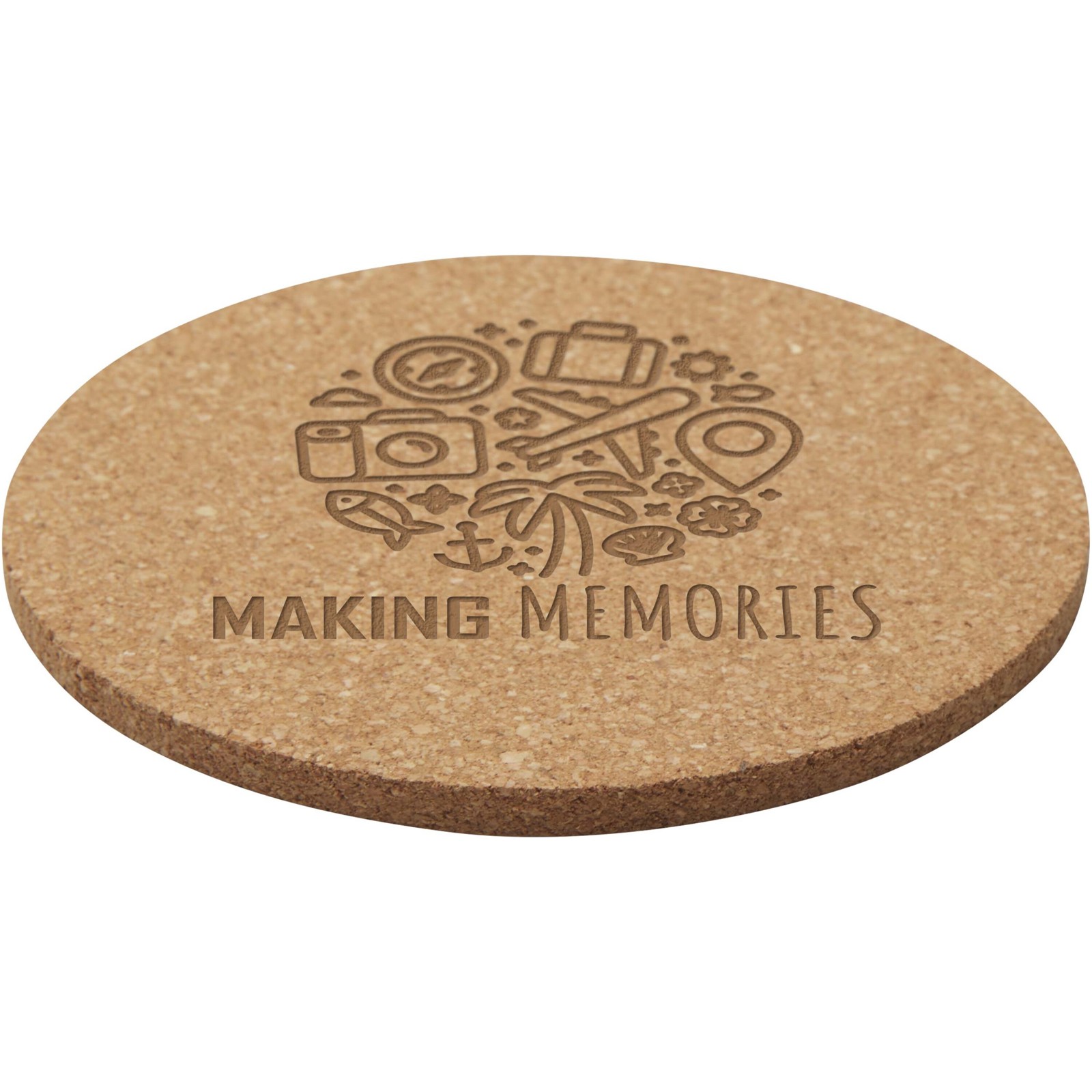 Round coaster made of cork sourced from more sustainable and socially responsible sources. Size: 10 x 0.5 cm.