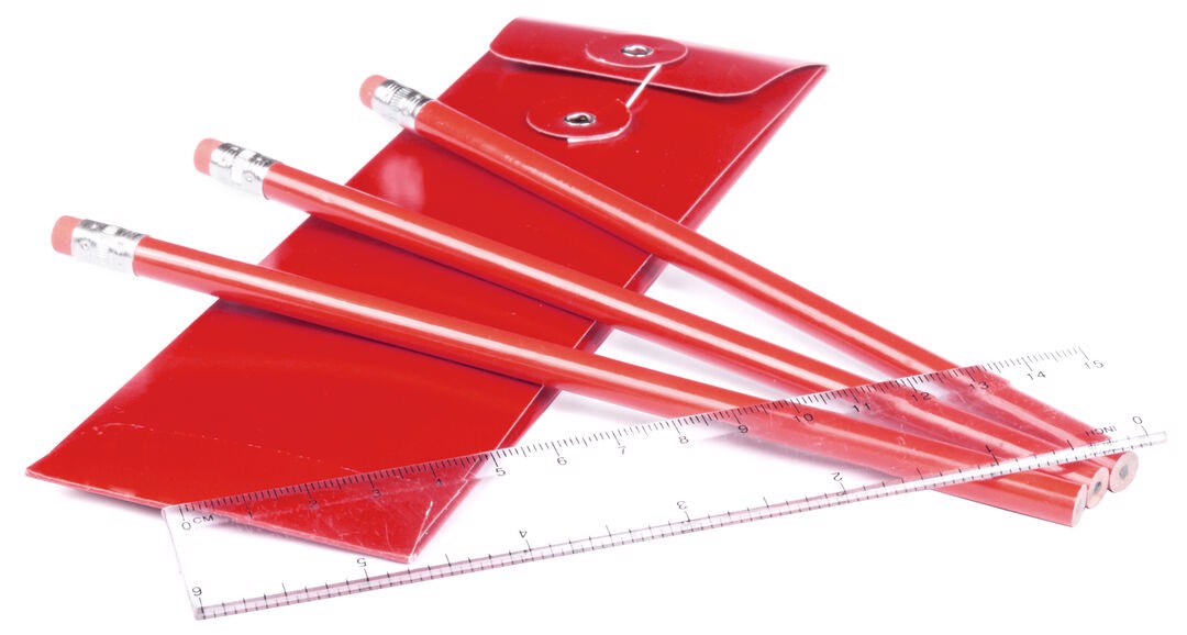 Set of 4 pieces with 3 wooden pencils with round body in bright finish, cheerful colors, with black lead, and a 15cm transparent ruler with metric system in centimeters/inches. Presented in a matching color cardboard box with thread closure. 4 Pieces