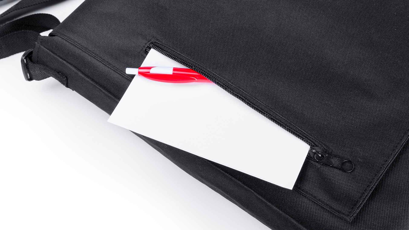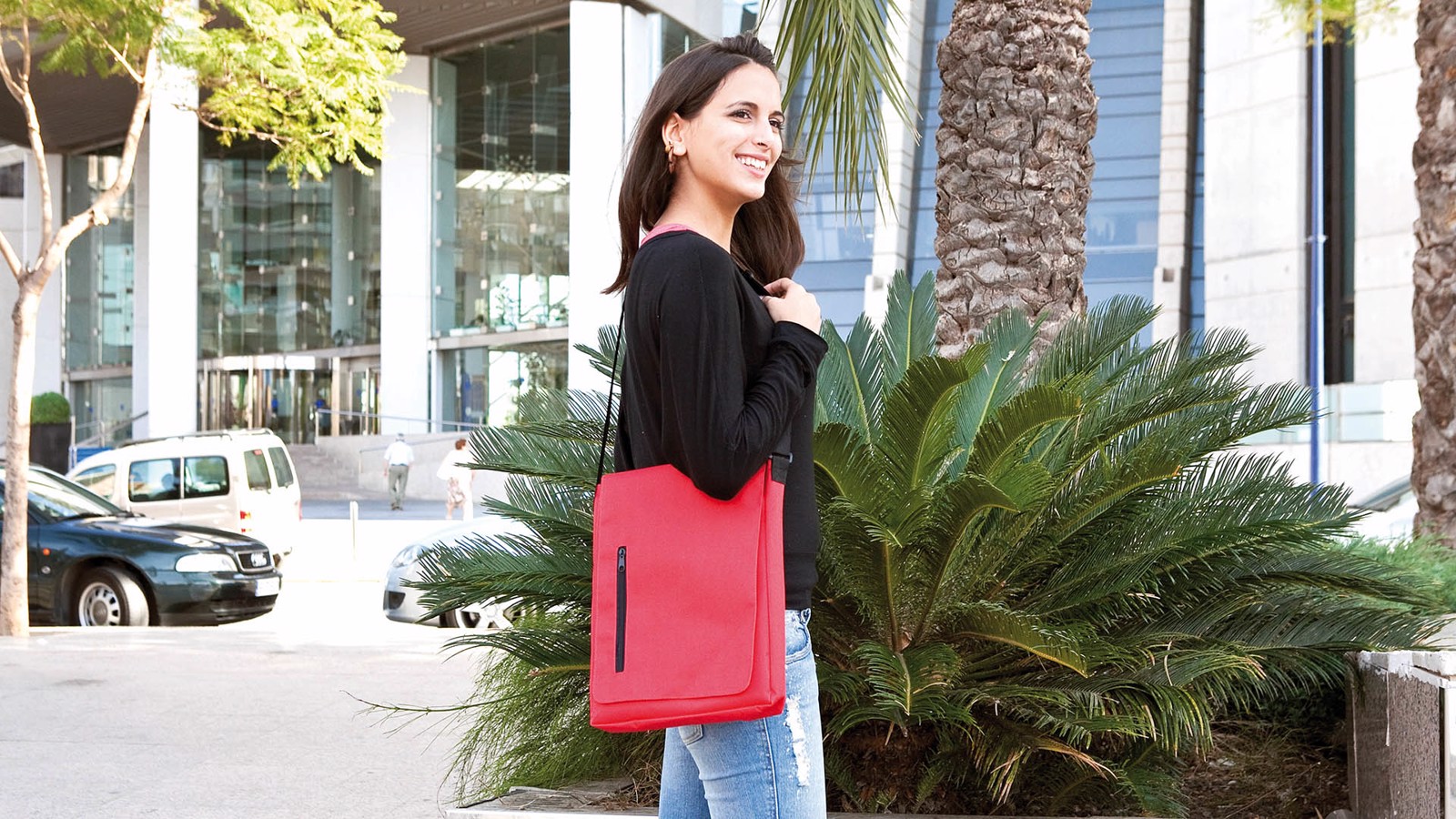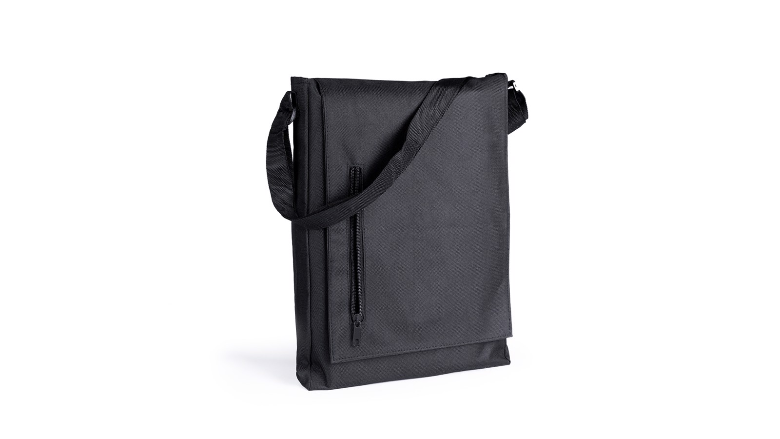 Urban-design shoulder bag in resistant 600D polyester with velcro flap closure and zippered outside pocket. Adjustable shoulder strap.