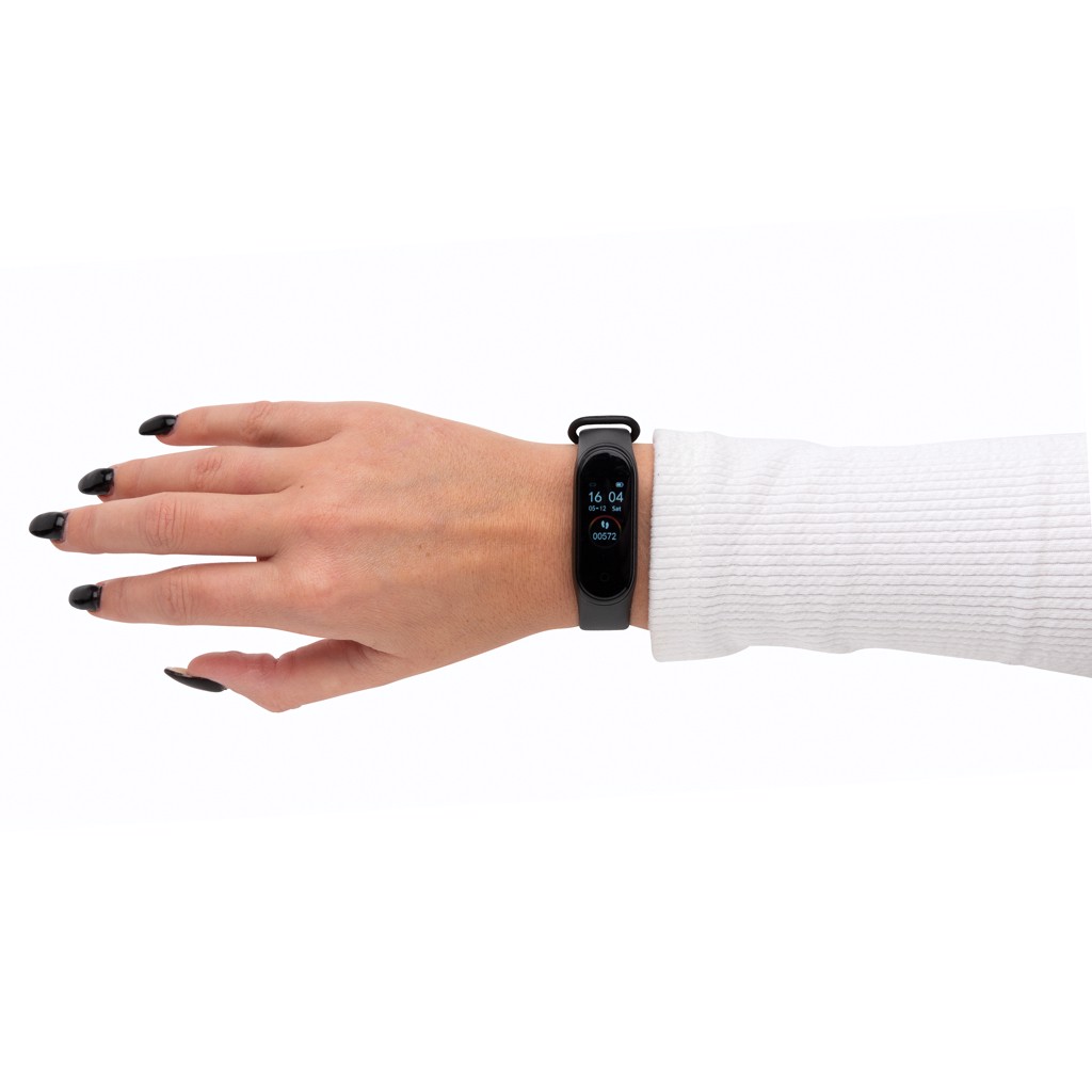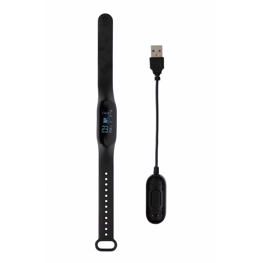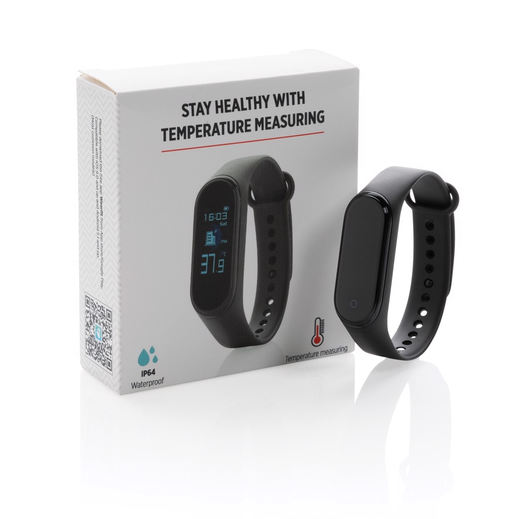 Mit diesem Armband behalten Sie Ihre Körptertemperatur immer im Auge (Abweichung max 0,2 Grad). Das Armband aus sanftem TPU für ein angenehmes Tragen und seinem 0'96 TFT Color Screen hat zudem folgende Funktionen: BT 4.2, IP 67 wasserdicht, zeiegt eingehende Nachrichten/Anrufe, Stopuhr, Multi-Sport-Modus, Kalorienverbrauch, Schrittzähler and Schlafmonitoring. Die 90 mAh A-Grade Batterie hat eine Stand-By-Zeit von bis zu 5 Tagen
