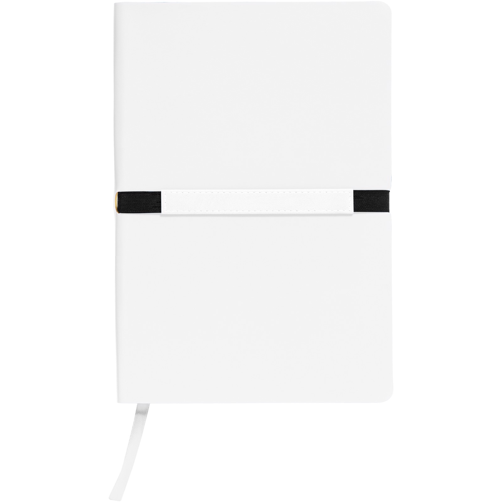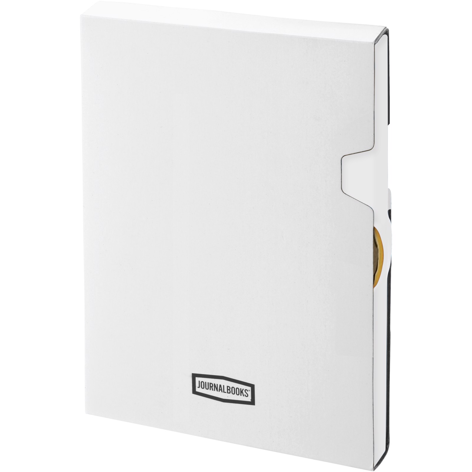 Dieses intelligent gestaltete Notizbuch (A5) bietet dank eines stabilen, am Rücken verbundenen Gummibands mit speziellem Werbeanbringungsbereich ganz neue Möglichkeiten für die Werbeanbringung. Mit 96 Blatt (80 g/m²) liniert. In einer Journalbooks Geschenkhülle verpackt.