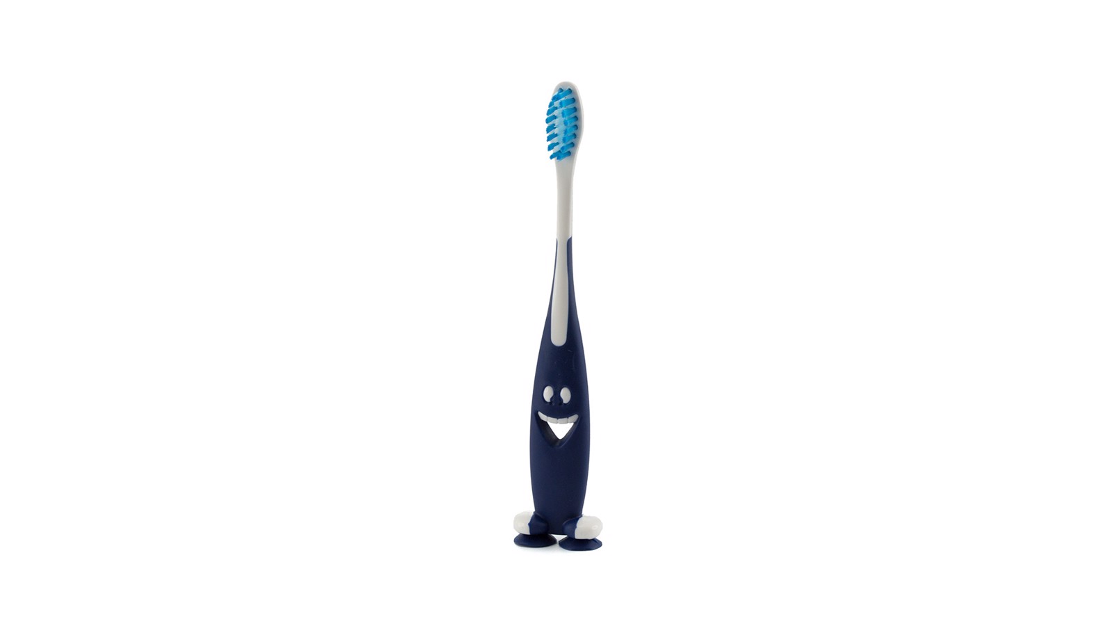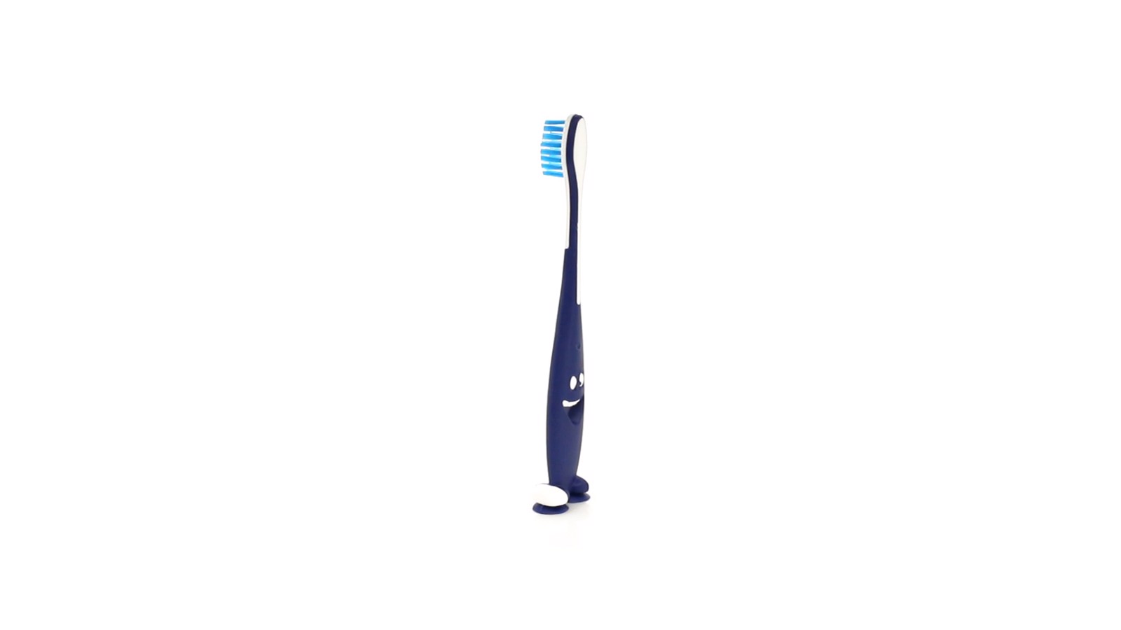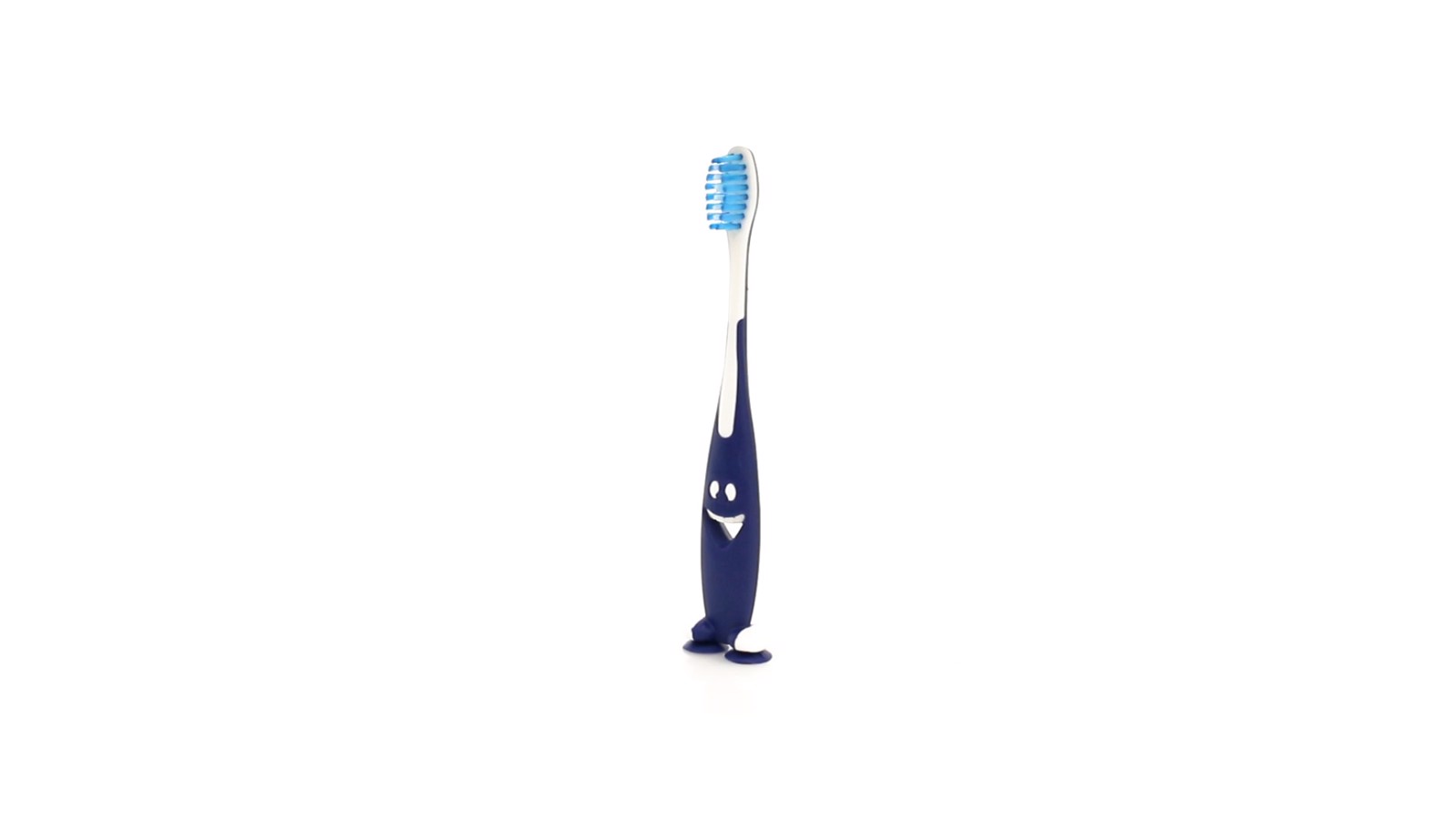 Toothbrush of fun design in varied colors and with a soft touch. With suction cups on the base.