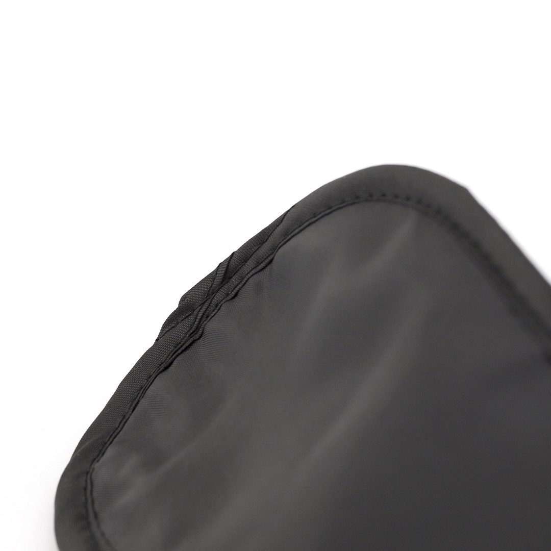 Soft and comfortable microfiber mask in black finish with matching color double elastic adjustment.