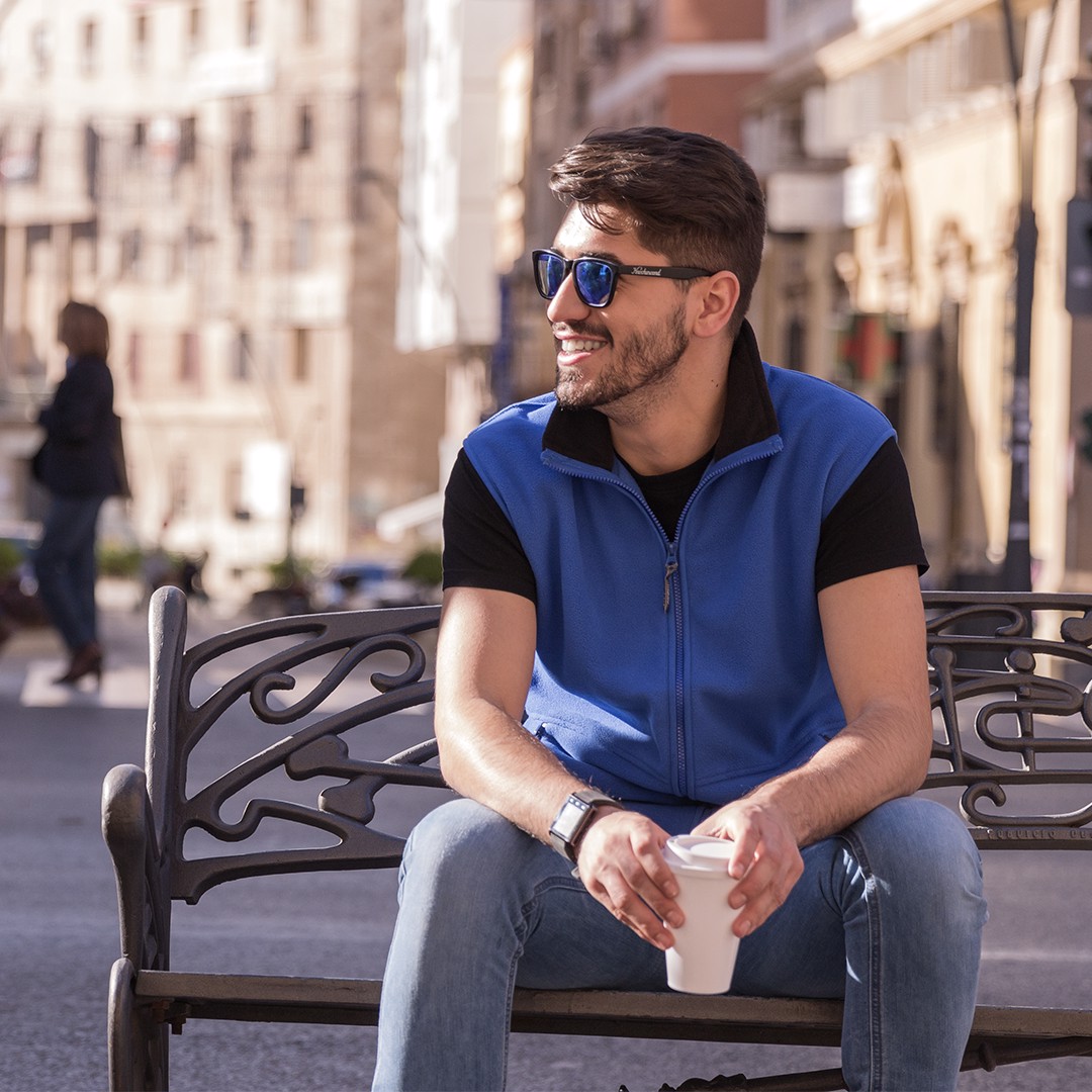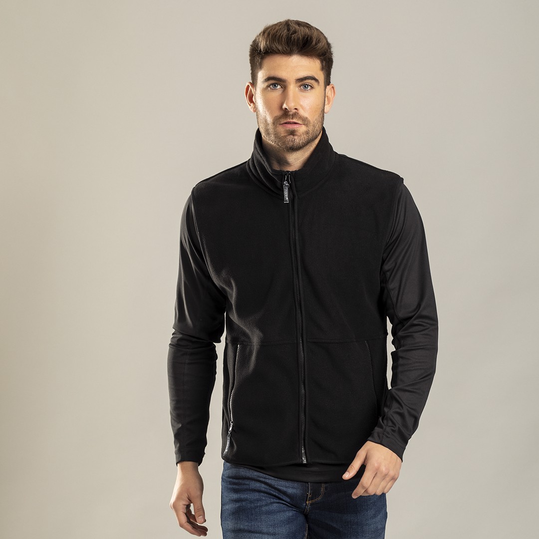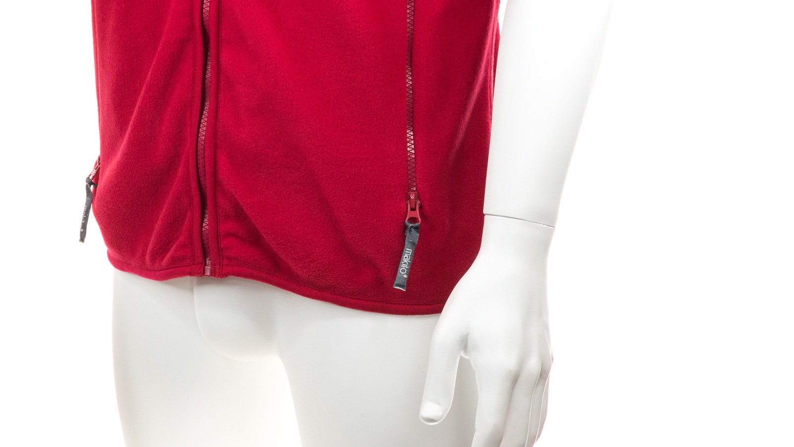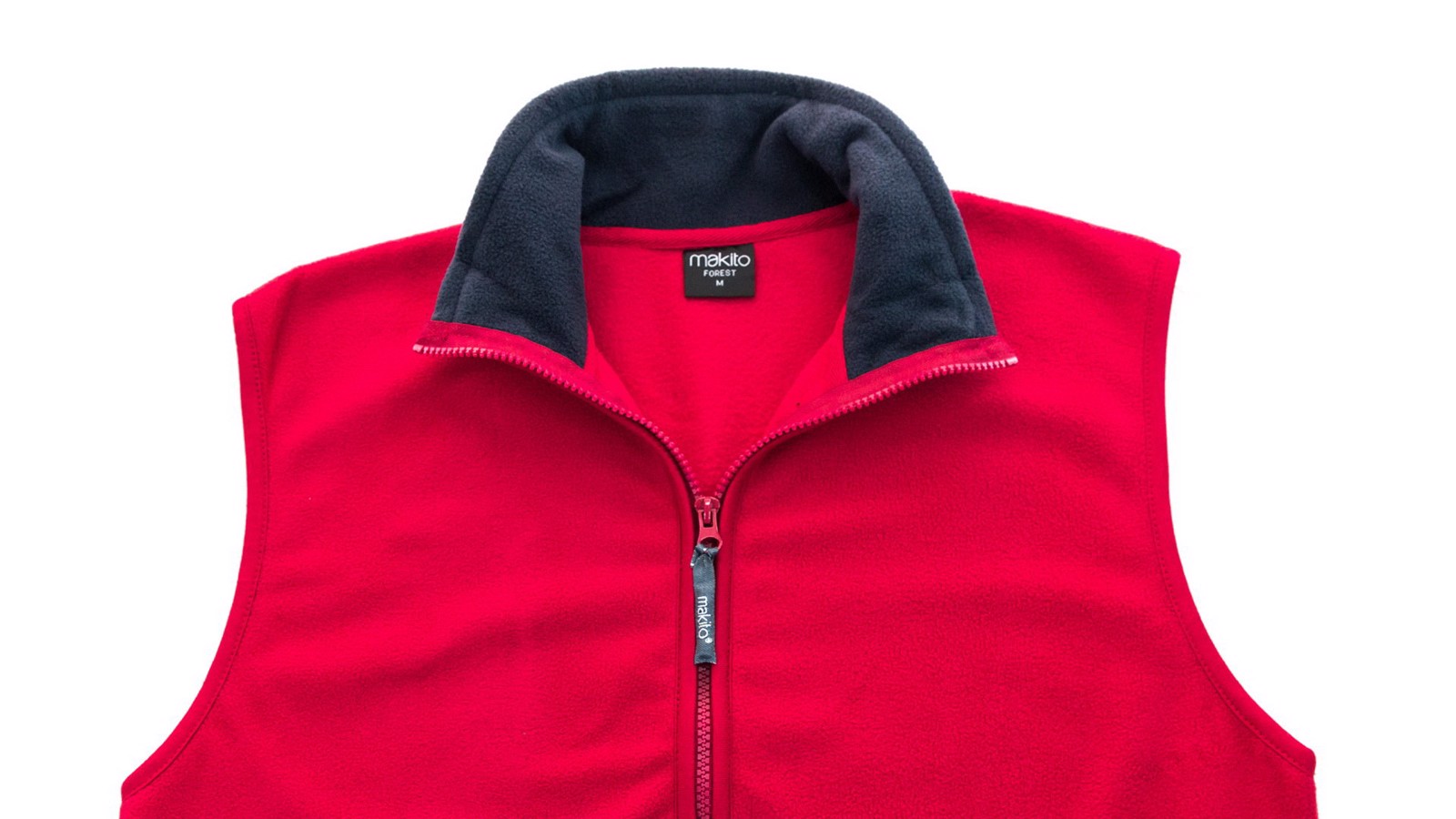 Waistcoat in warm and soft polar fleece of 280g/m2 with anti-pilling treatment. With colored inside collar, zipper closure with handle strap, side zipper pockets and elastic waist. Available in sizes M, L, XL, XXL. Anti-Pilling Treatment. Sizes: M, L, XL, XXL