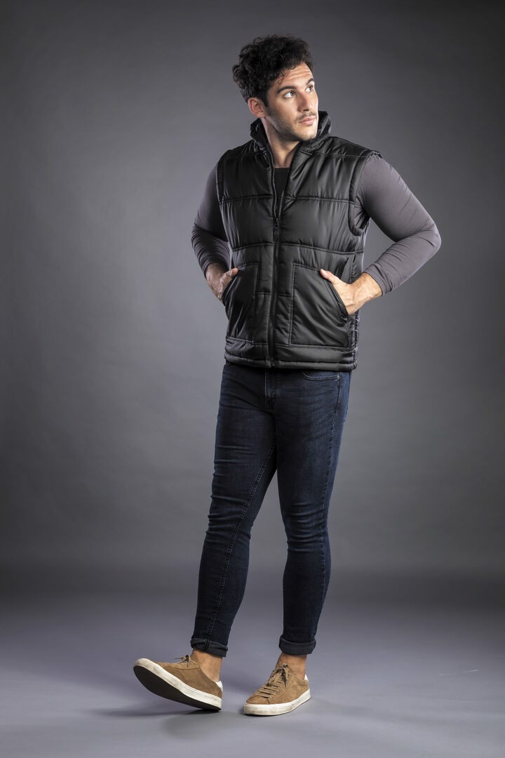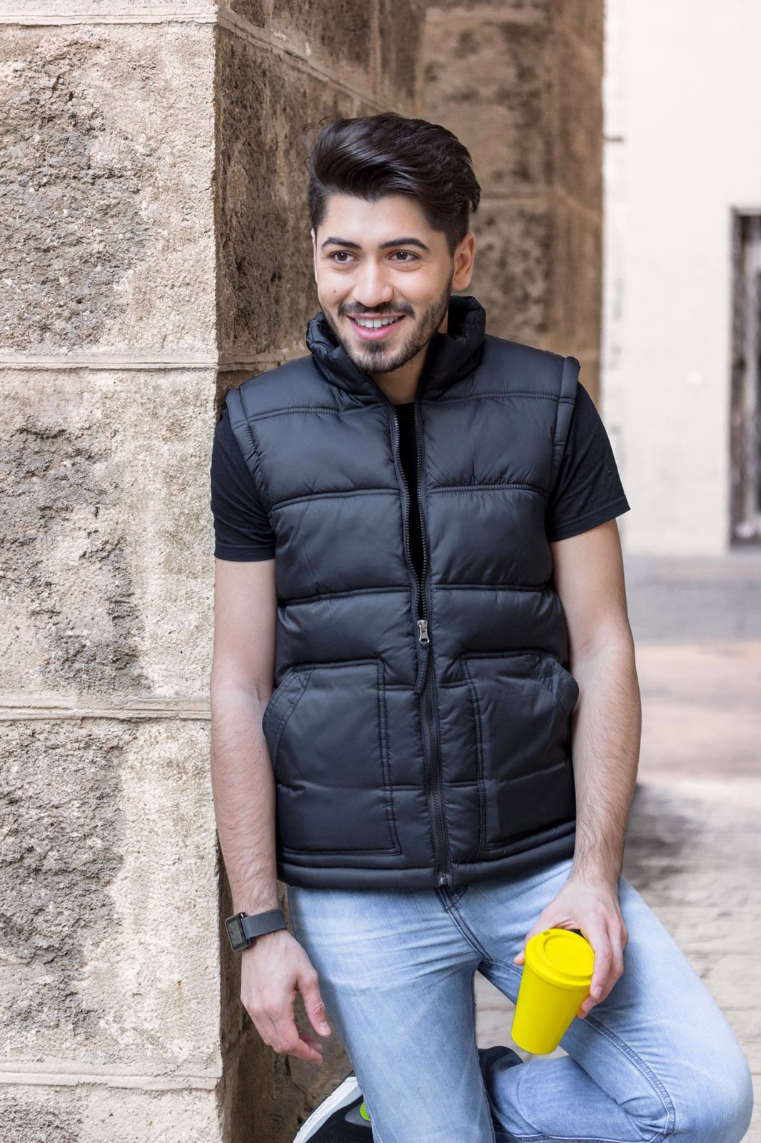 Vest in warm and soft material, in combination of nylon and polyester. With recycled PET padding, zipper closure with strap in puller and large side pockets. Available in sizes M, L, XL, XXL. Sizes: M, L, XL, XXL