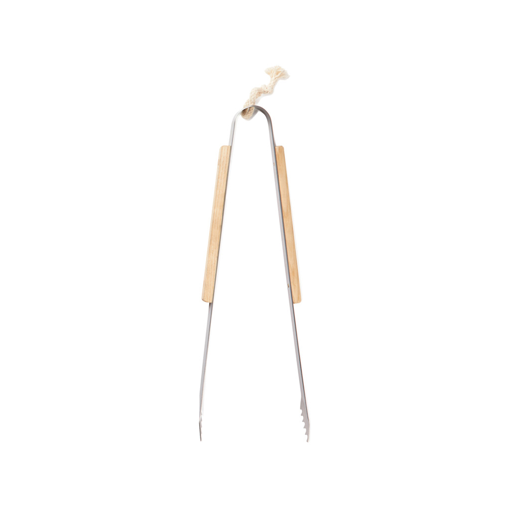 Eine robuste Zange aus rostfreiem Stahl. Perfekt zum Grillen und in der Küche. Griff aus Eschenholz.