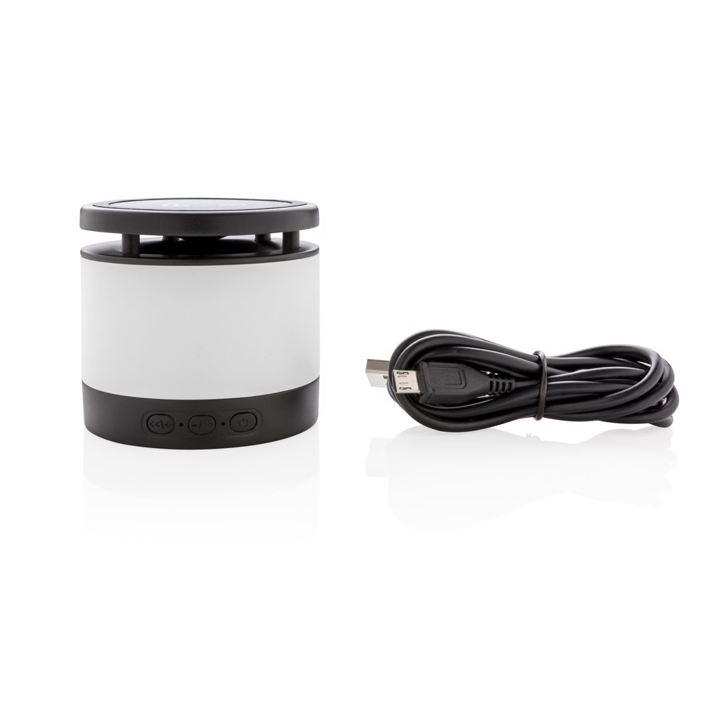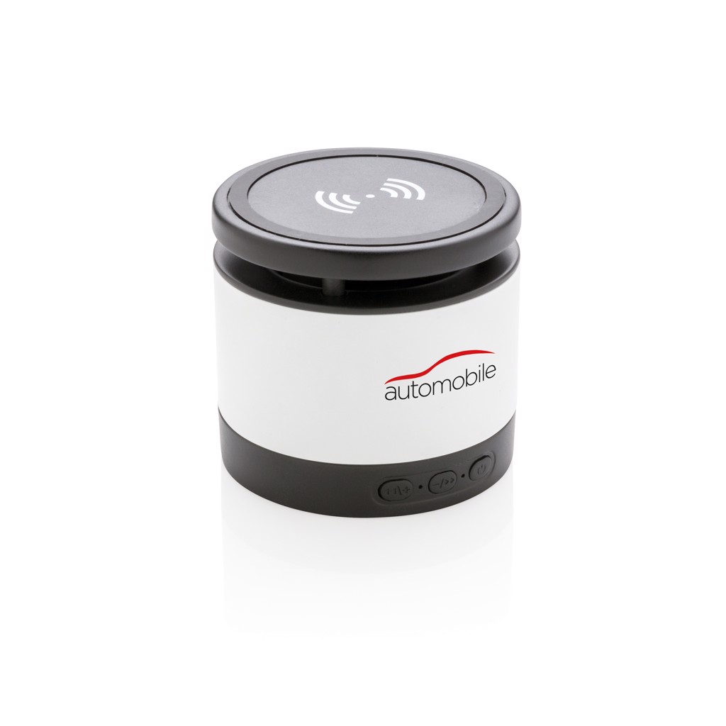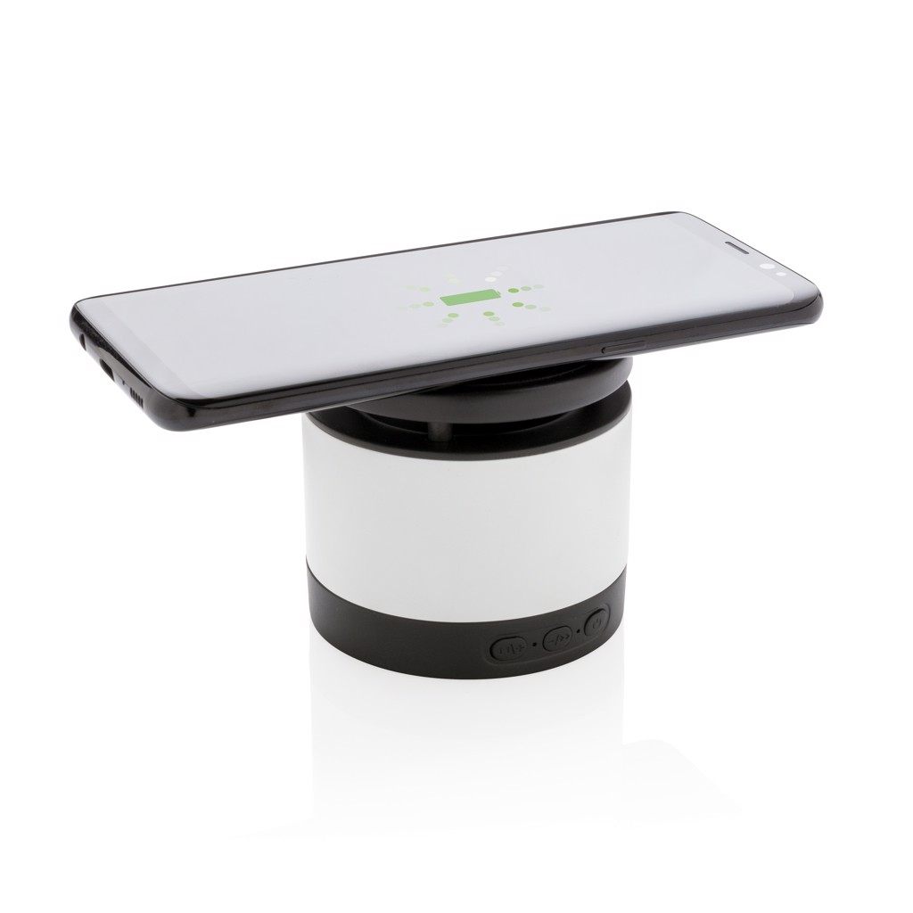 Dieser 3W Wireless-Charger erlaubt es Ihnen Ihr mobiles Gerät zu laden während Sie Ihre Lieblingsmusik hören. Verbinden Sie das inbegriffene Micro USB Kabel (150cm) einfach mit einer Energiequelle und schon kann es losgehen. Der Lautsprecher verfügt über 3W, BT 4.2 und eine 400mAh Batterie für eine Spielzeit von bis zu 3 Stunden bei einer Reichweite von bis zu 10 Metern. Beim zeitgleichen Gebrauch beider Funktionen empfehlen wir den Lautsprecher an eine Energiequelle anzuschließen. Kompatibel mit allen QI Geräten wie z.B. Androids neuster Generation, iPhone 8 und höher. Input: 5V/1A. Wireless output: 5V/1A 5W. Registered design®