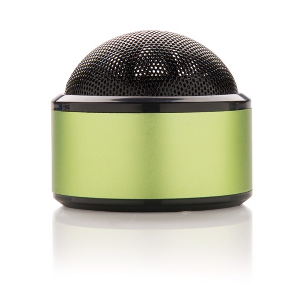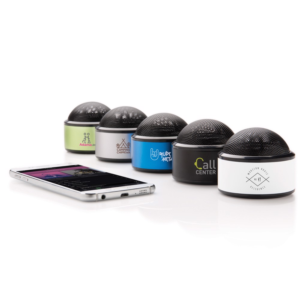 3W Wireless BT Lautsprecher mit 350mAh Batterie aus Aluminium mit Metallraster und einer Gummierung an der Unterseite für gute Haftung und besseren Sound. Aufgrund des cleveren Designs wird die Musik in alle Richtungen abgespielt. Spielzeit bis zu 3 Stunden mit einem Ladevorgang und bis zu 10 m Reichweite. Inklusive Micro-USB Kabel und Audiokabel für die Verbindung zum Telefon ohne Wireless-Funktion. Kompatibel mit allen Smartphones.