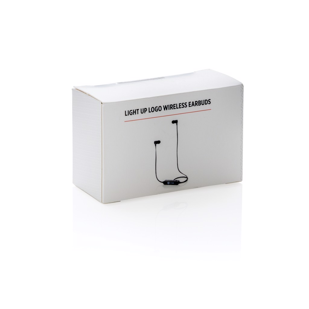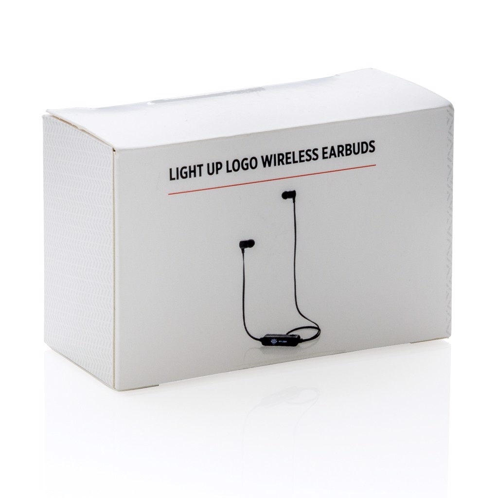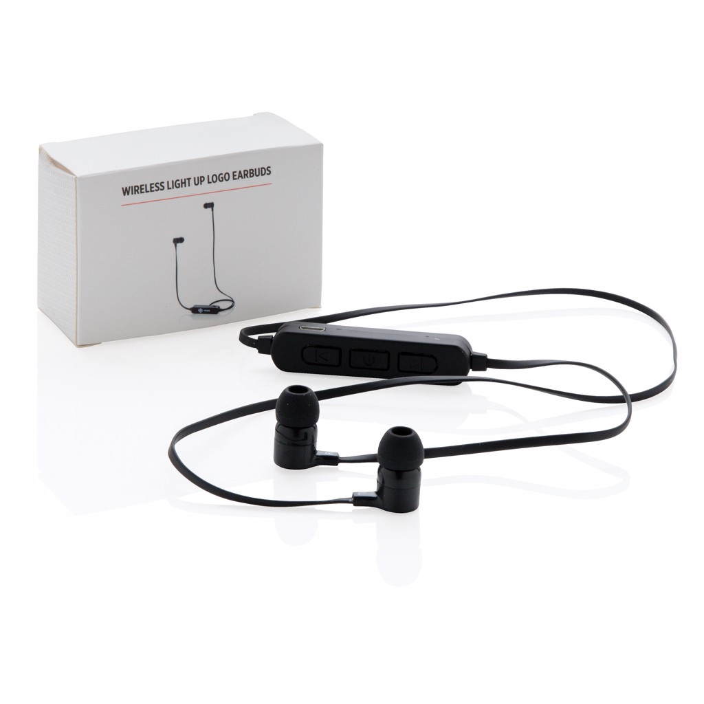 Diese Wireless Ohrhörer können individualisiert mit Ihrem Logo gestaltet werden. Bei Gebrauch des Artikels leuchtet es auf und setzt Ihr Logo somit perfekt in Szene. Die Ohrhörer sind mit BT 4.2. ausgestattet; mit einer Reichweite von bis zu 10 Metern. Die eingebaute 55mAh Batterie erlaubt einen Musikgenuss von bis zu 3 Stunden und hat eine Ladezeit von 1,5 Stunden. Die Kopfhörer verfügen über ein Mikrofon und eine Pick-up Funktion zur Annahme von Anrufen.