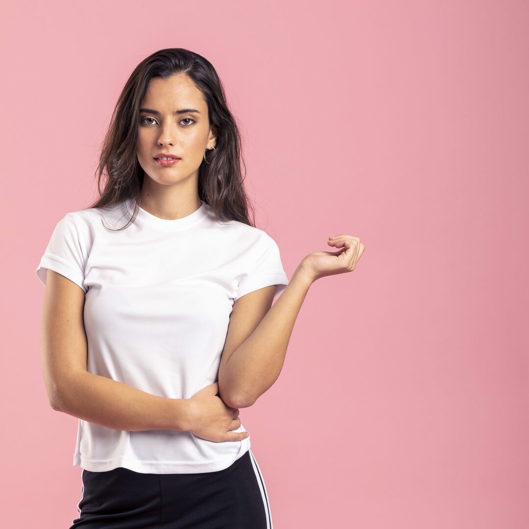 Technical t-shirt for women in 100% breathable polyester material of 135g/m2. Available in a wide range of bright tones and in sizes S, M, L. Breathable. Sizes: S, M, L, XL