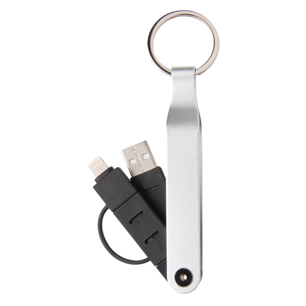 Convenient 2-in-1 keychain cable with both MFi (made for iPhone) lightning plug for all Apple devices and micro USB for all Android phones. It is easy to attach to your keychain or bag to take it anywhere you go. The cable is suitable for both charging and data transfer. The casing is made out of aluminium and the cables are tangle free TPE.