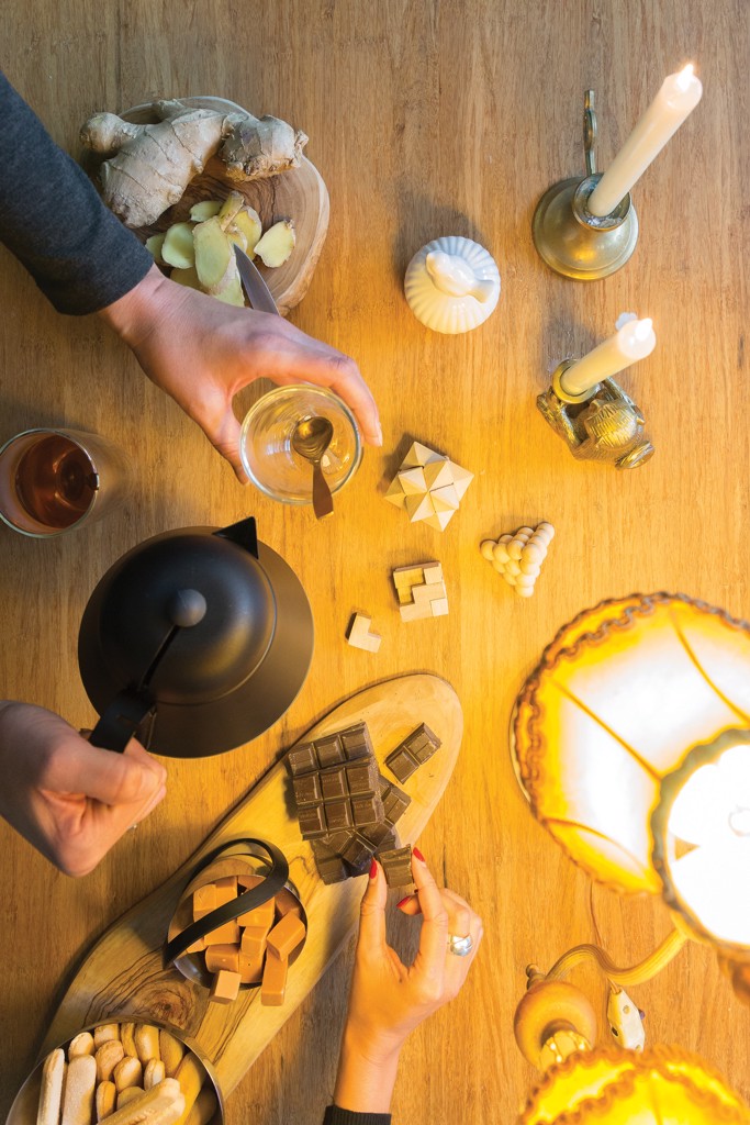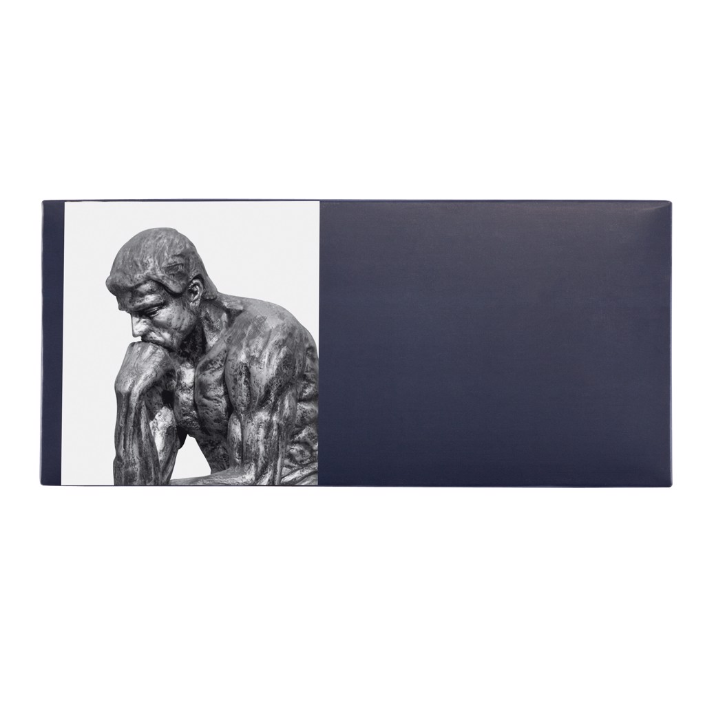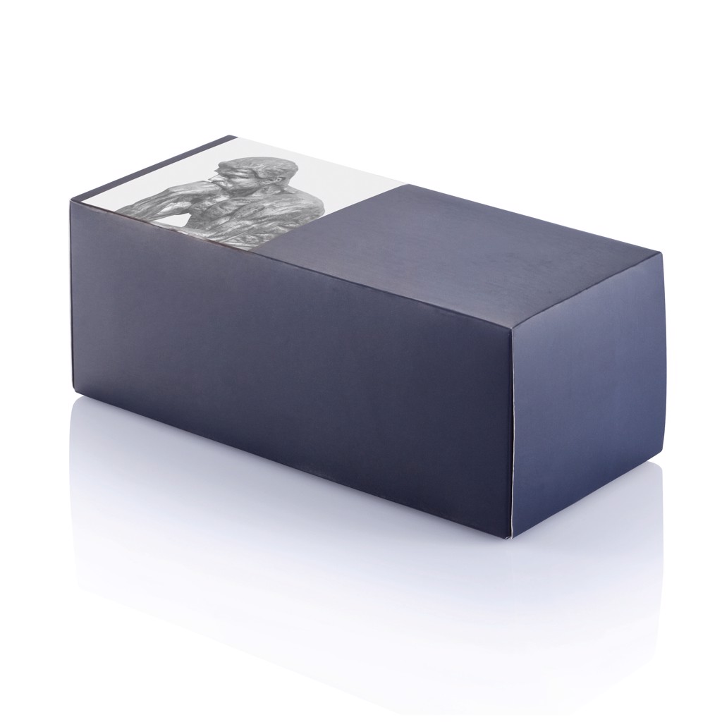 White sprayed pine wooden box with 3 different brain puzzles. Packed in black box with separate blue lid and matching blue felt inside and bottom.