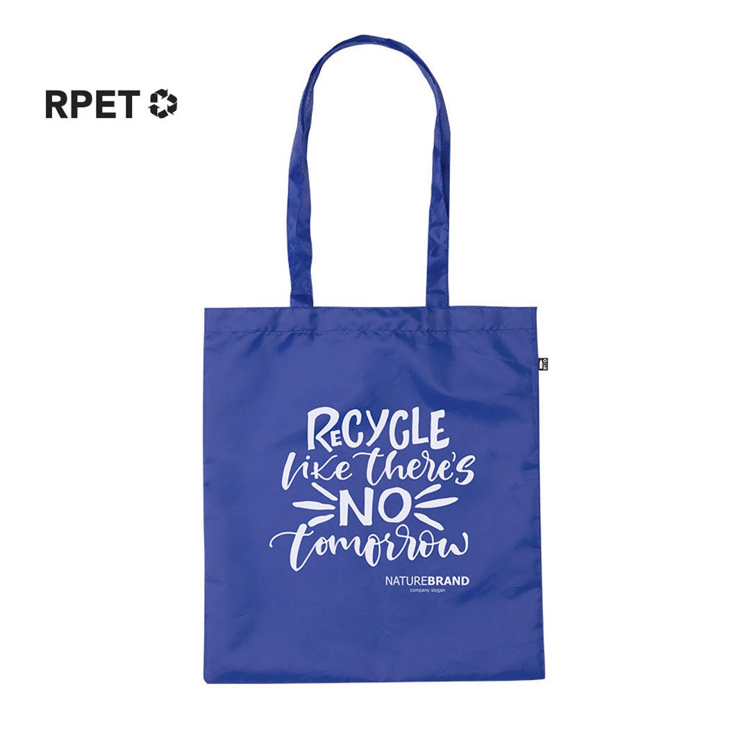Eco-friendly bag in resistant RPET material, obtained from recycled plastic materials, to encourage the reusing of plastic residues and contribute to the Earth’s sustainability. In a wide range of vivid colors, with 70cm, reinforced, long handles and stitched finishing. Resistance up to 10kg weight.