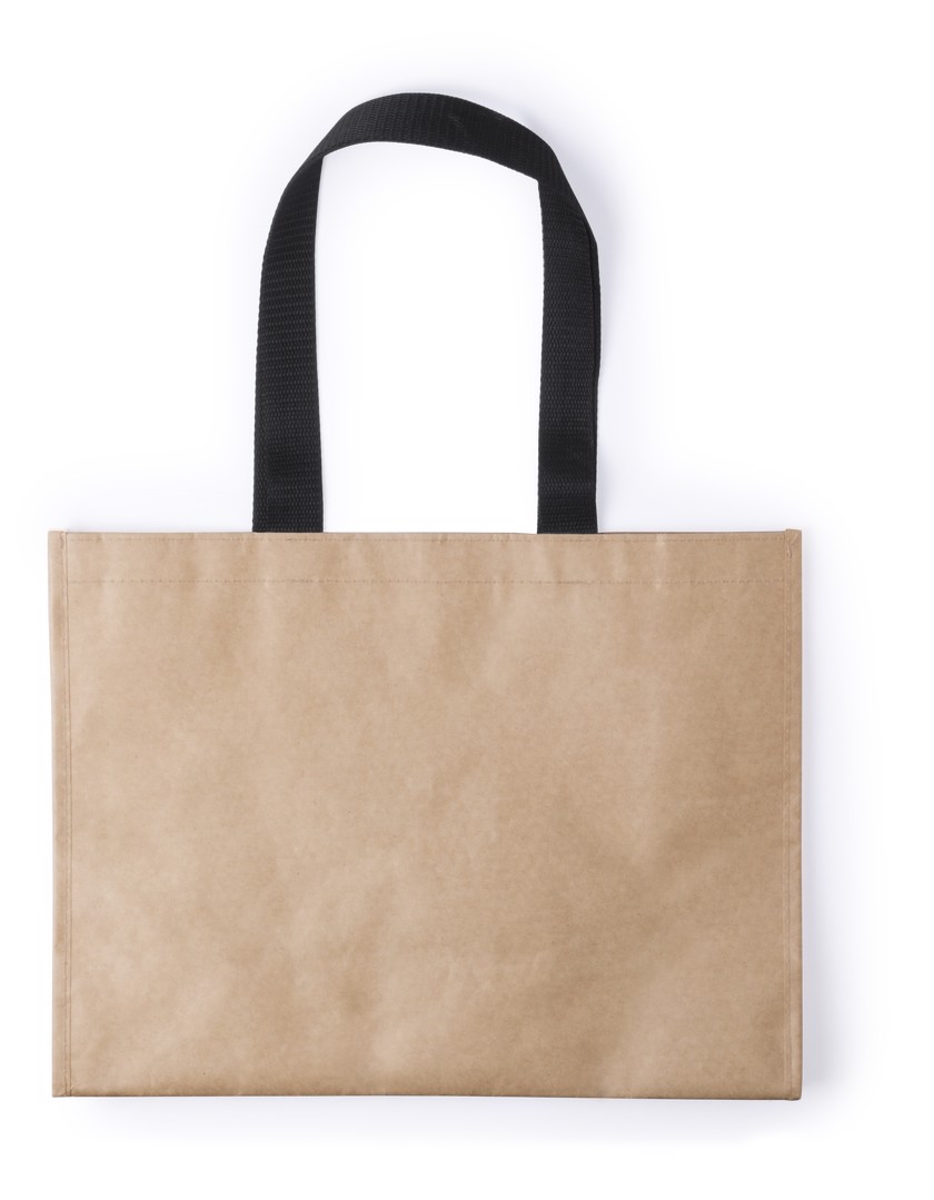 Eco-friendly bag in KPP material -a combination of paper and non-woven- of 140g/m2. Stitched finishing, with 70cm, reinforced, long handles in black, contrast color. Resistance up to 7kg weight.