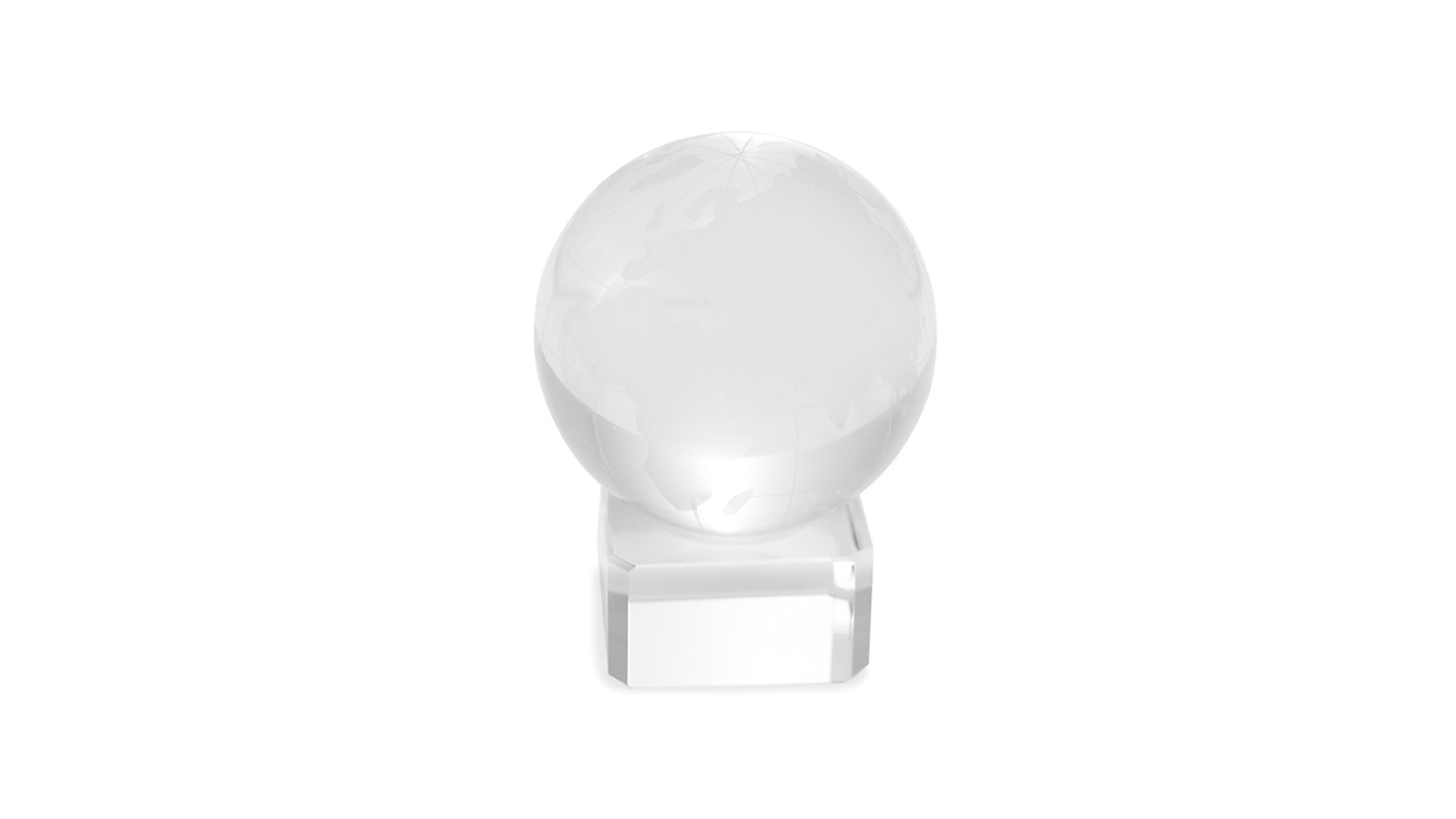 Earth-shaped crystal ball with laser printing base. Presented in an individual protective case.