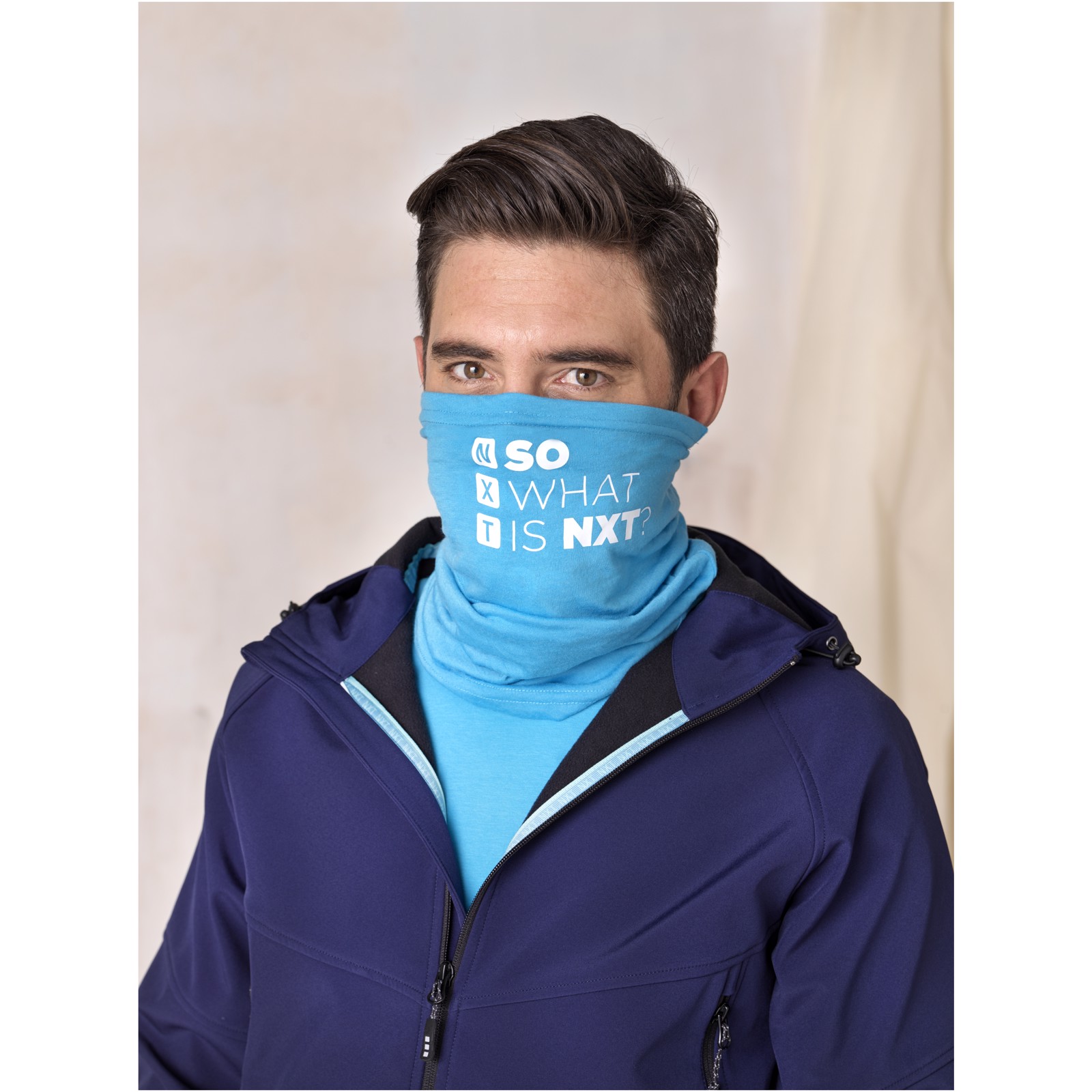 High quality, multifunctional snood, made of a soft and comfortable 100% certified recycled polyester. GRS certification ensures a 100% certified supply chain. This snood, or tube scarf, is a customizable multifunctional item: face covering, scarf, collar, neck warmer, scarf, hood, hat, bandana. Use it to mask your face in public or as a multi-use snood for outdoor activities. The wash-and-wear material keeps it looking new, even after repeated washing. With multiple ways to wear it, it may be the most useful accessory in your wardrobe.