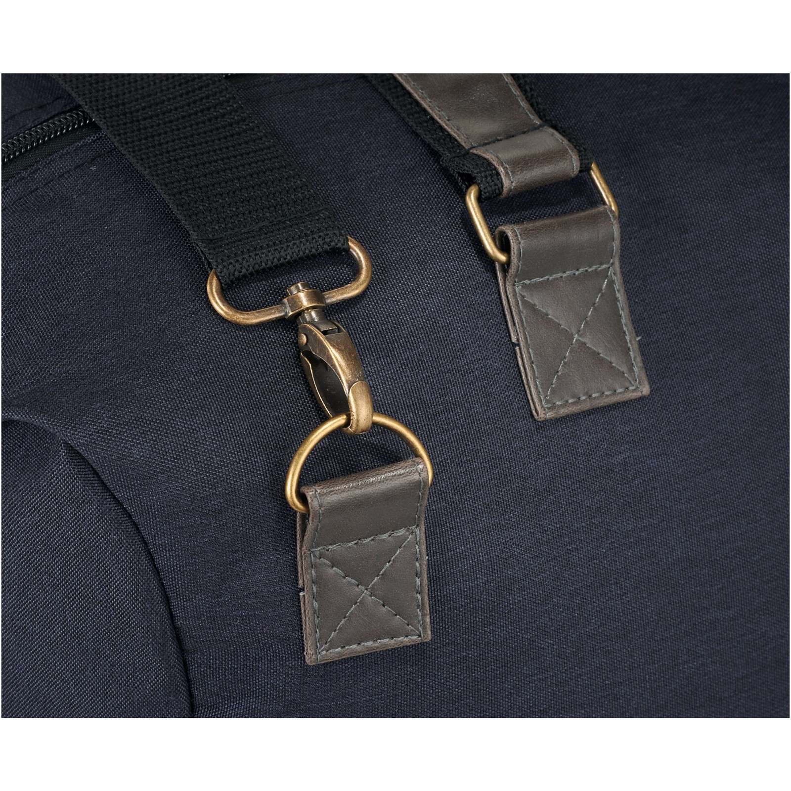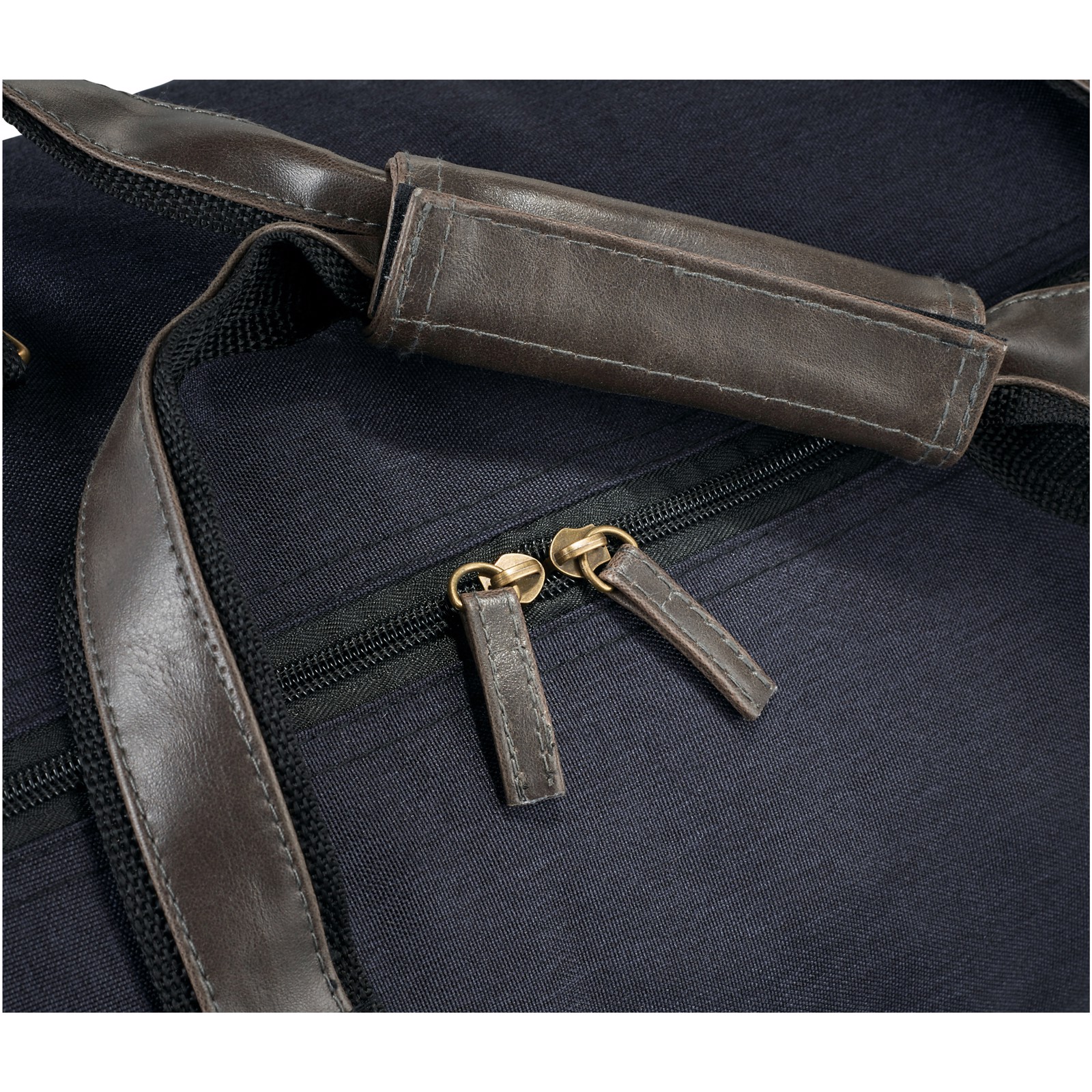 Exhibit your powerhouse style with the Capitol Collection, a blend of classic and contemporary design. Standard features include large main zipped compartment, dedicated zipped shoe pocket, and front zipped pocket for additional storage. Detachable, adjustable padded strap and carrying handles for ease of travel. Imitation leather accents and antique hardware.