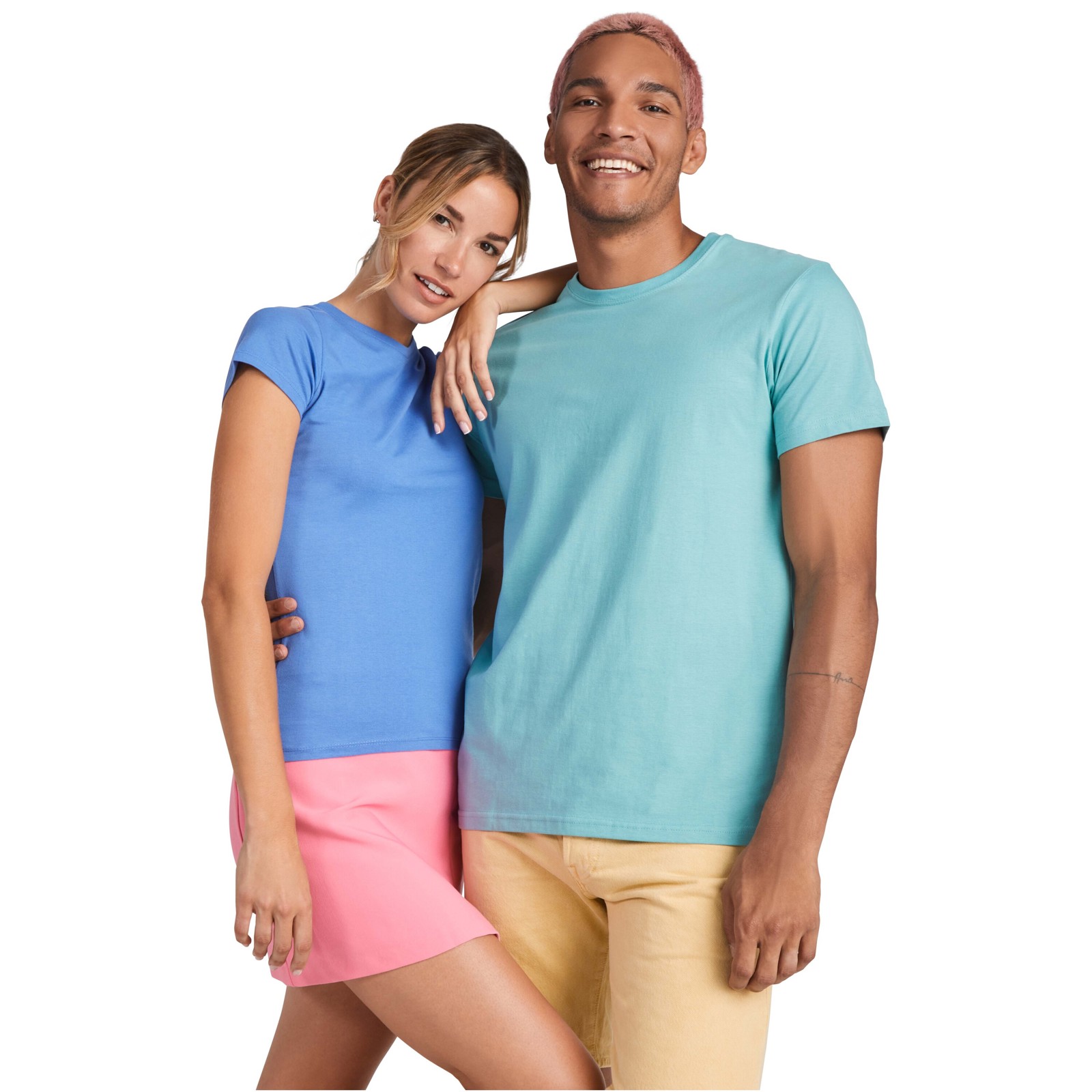 Fitted short-sleeve t-shirt for women. 1x1 ribbed crew neck. Reinforced covered seams in collar. Removable label.