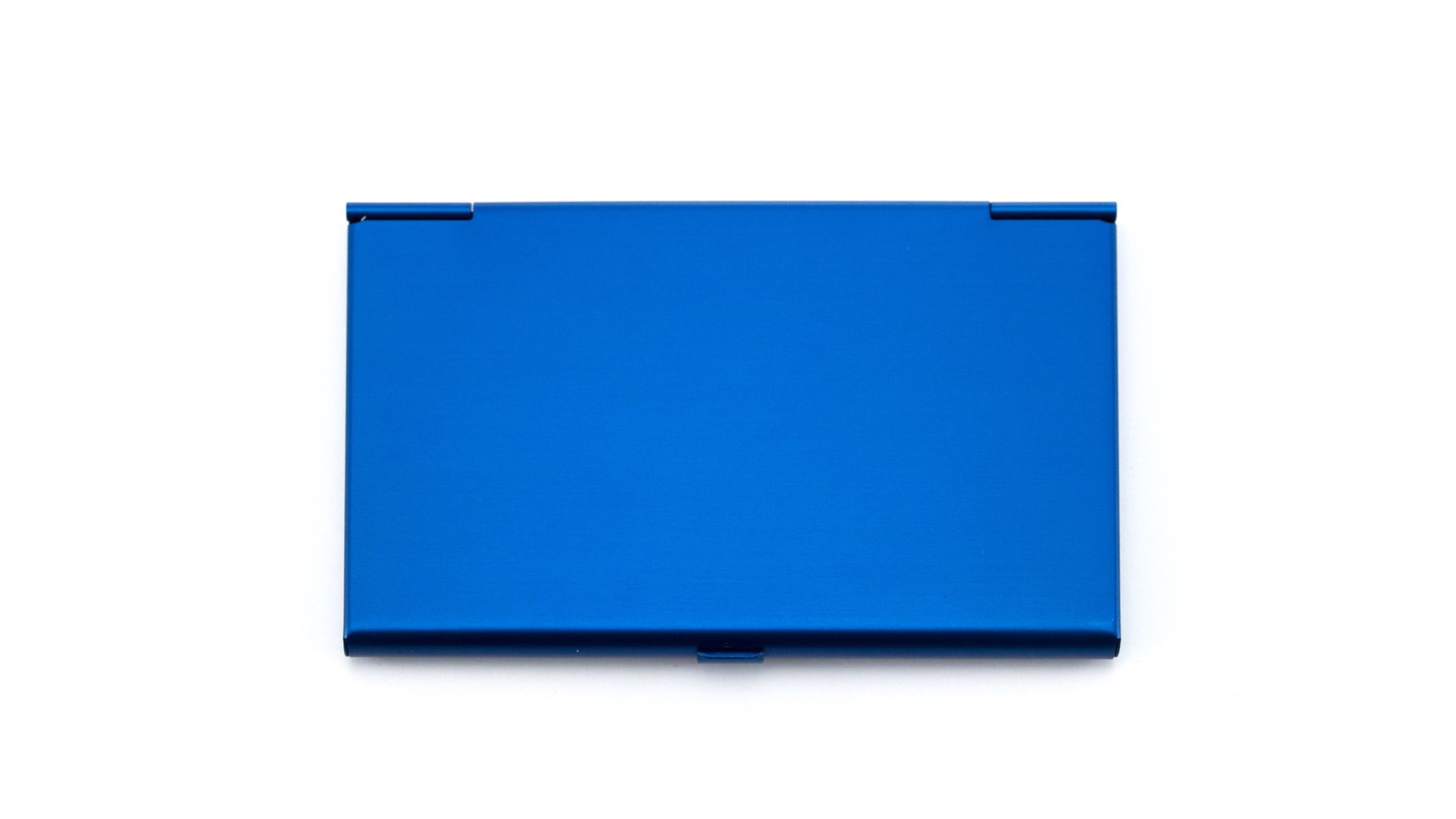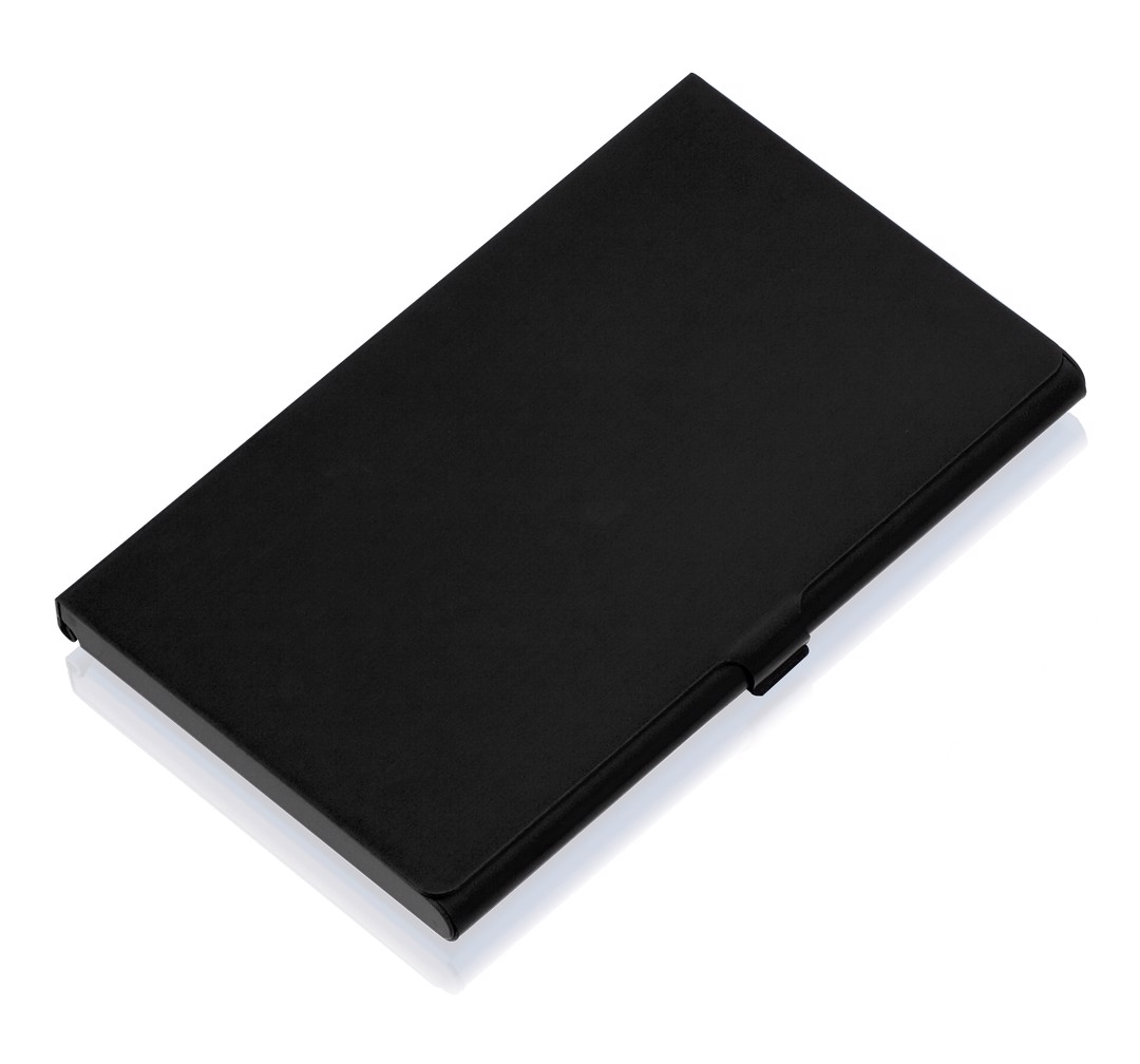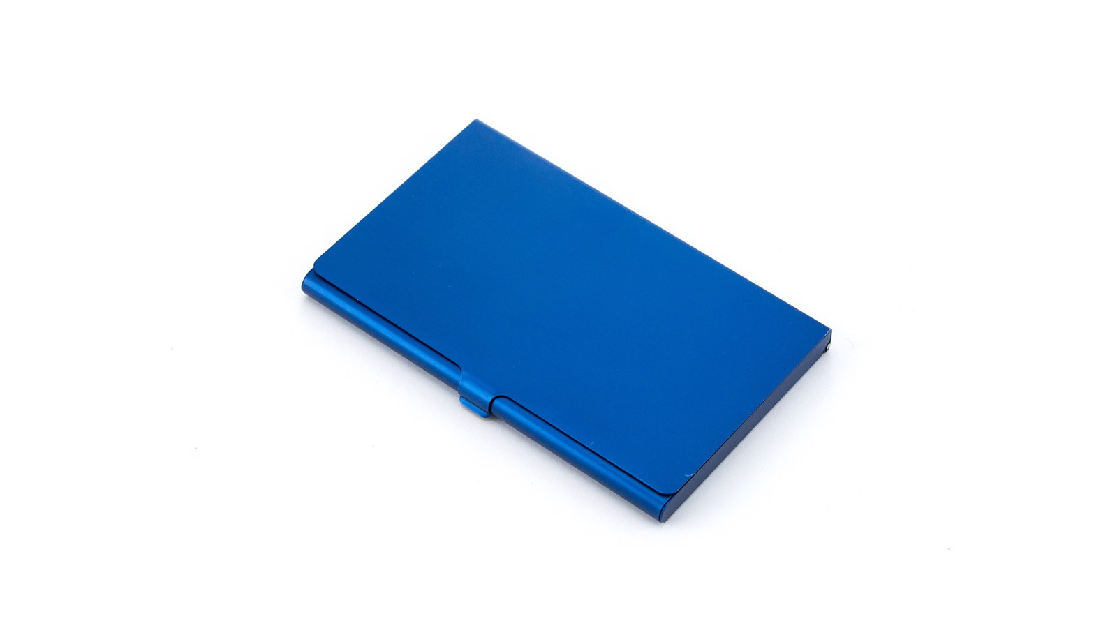 Elegant card holder with body in aluminum finish and elegant colors. With snap closure system and presented in an elegant black individual box. 1 Compartment