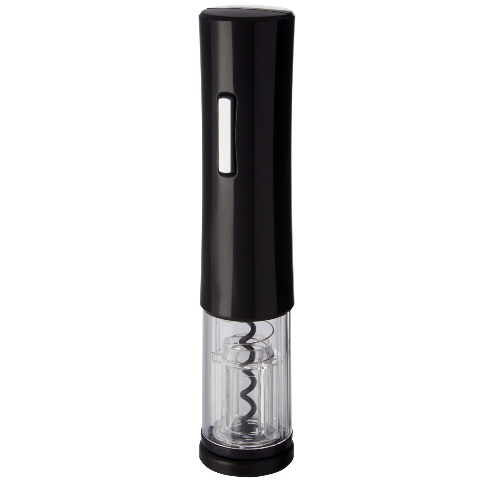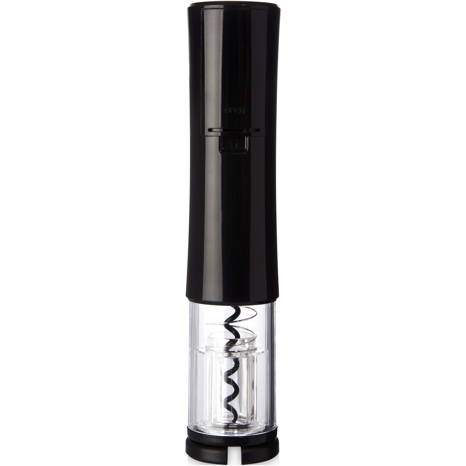 Electric wine opener that features a foil cutter. It works with 4 AA batteries (not included).
