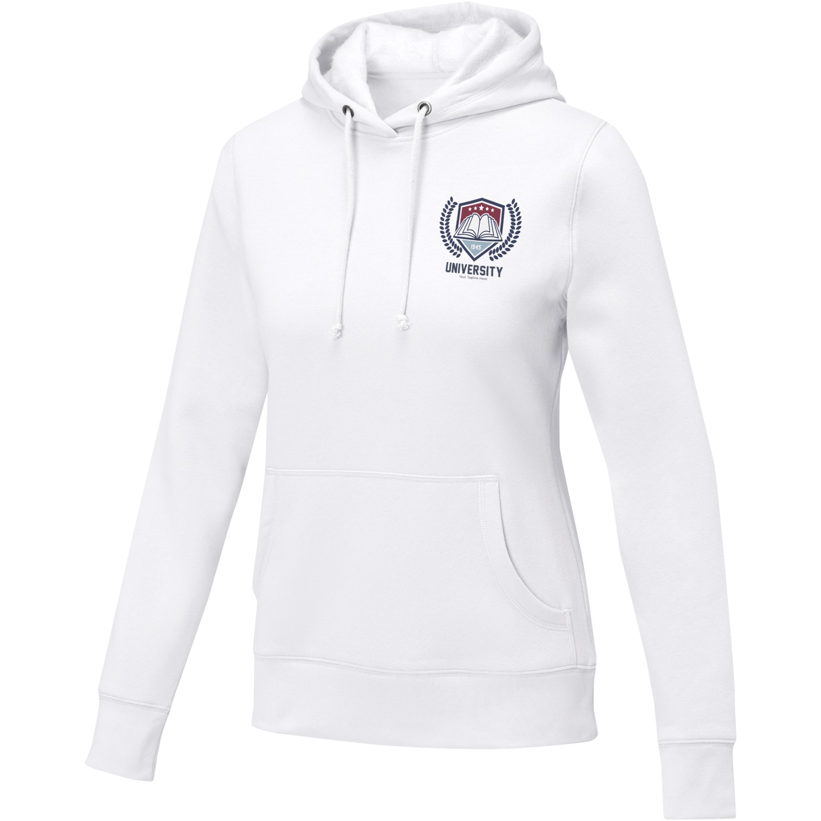 The Charon women's hoodie – the ultimate comfortable style. Made from a 240 g/m² blend of cotton and polyester, a perfect balance between comfort and breathability. The brushed interior ensures coziness, complemented by flat knit rib cuffs and bottom hem that optimize comfort. The adjustable drawstring in the hood offers a personalised fit, while the kangaroo pocket adds a touch of functionality and urban flair. Additionally, the interior custom branding options allow personalised branding or customisation inside the hoodie. Whether you're relaxing at home or heading out for a casual adventure, the Charon hoodie is the ideal companion for any setting. This hoodie is designed with a fitted shape for a feminine look.