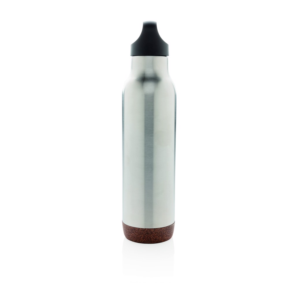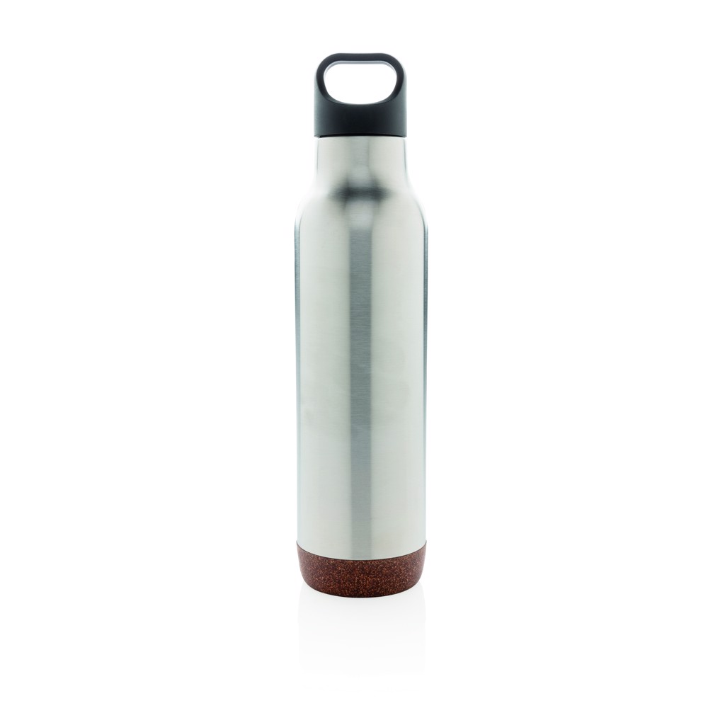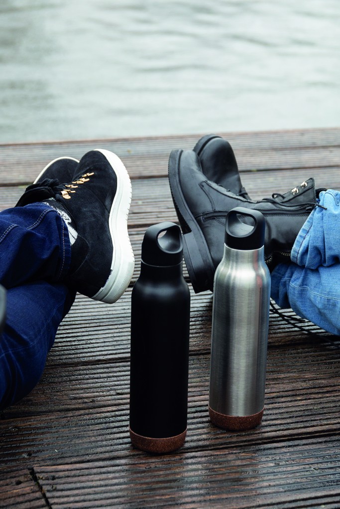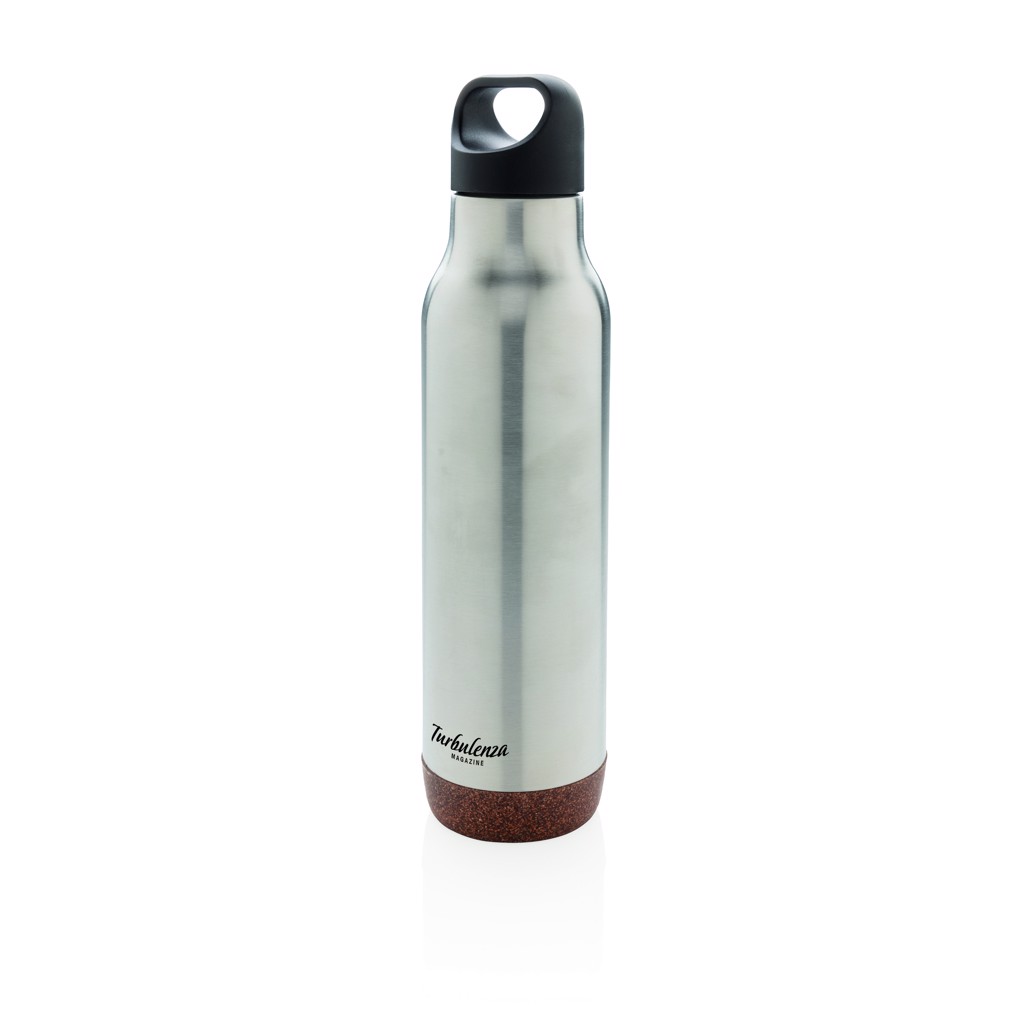 Vacuum insulated leak proof flask with durable 304 SS inside and 201 outside. Unique cork detail on the bottom. Keeps your drinks hot for up to 5h and cold up to 15h. Content: 600ml.