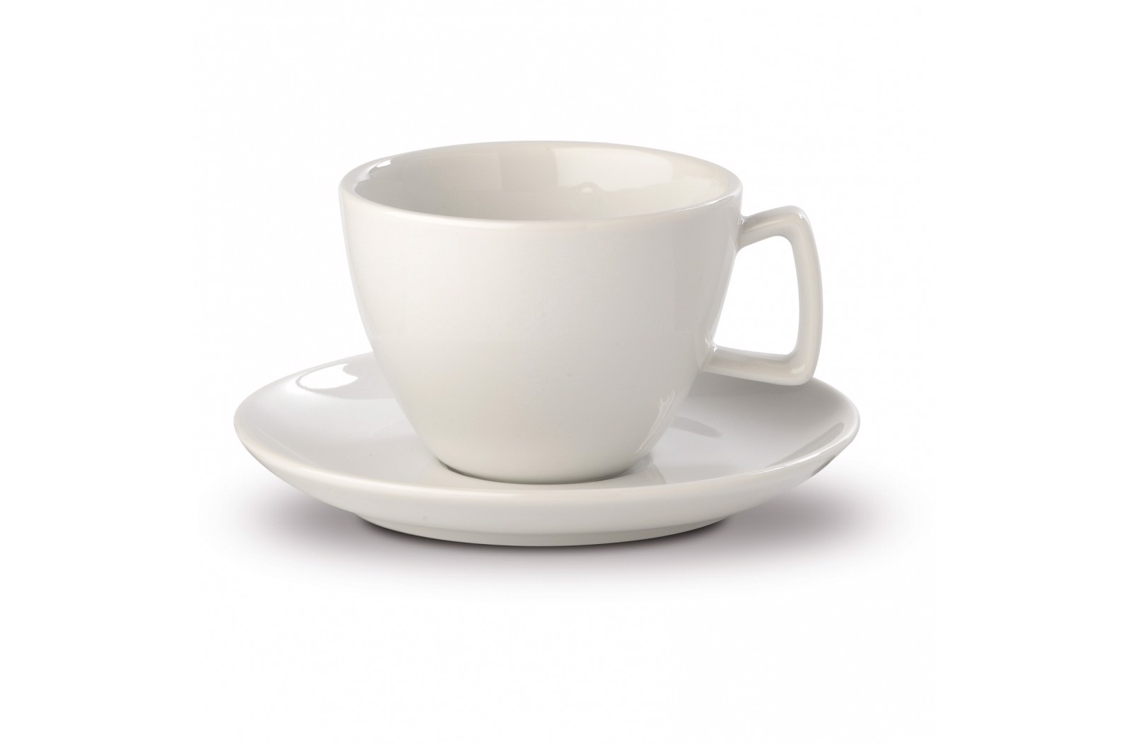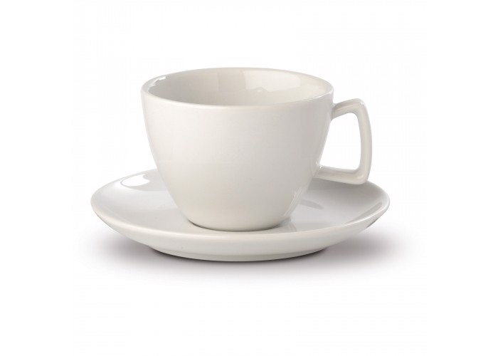 White cup and saucer made from porcelain. Ideal size for a cappuccino.
