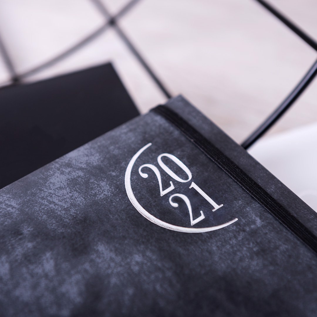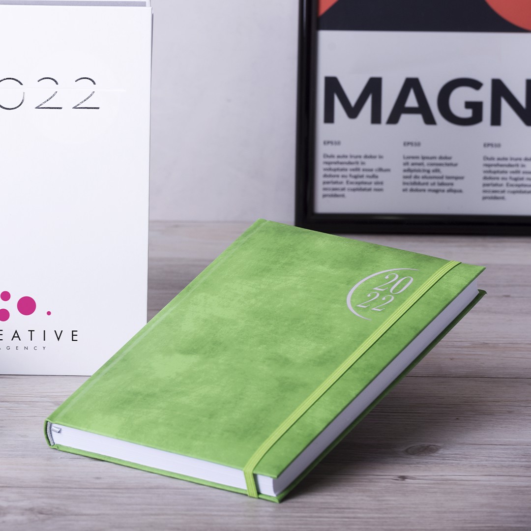 A5 size agenda in resistant and soft PU leather with padded covers. Elastic band in matching color and in varied colors. Day page design. In Spanish, English, French, Italian, Portuguese, Galician, Basque and Catalan. Daily Page