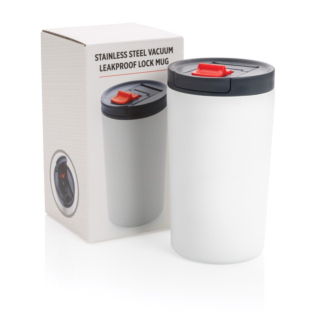 Double wall vacuum leakproof lock mug 300ml - White / Blue