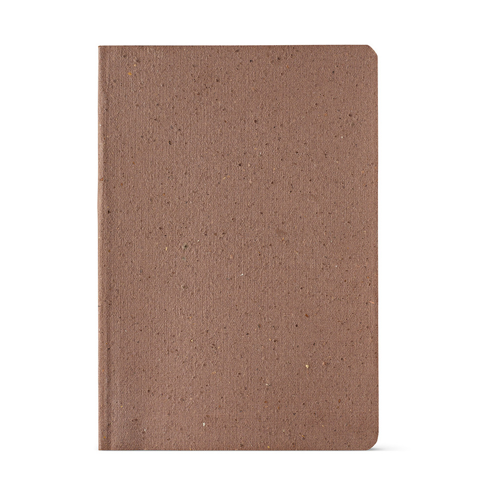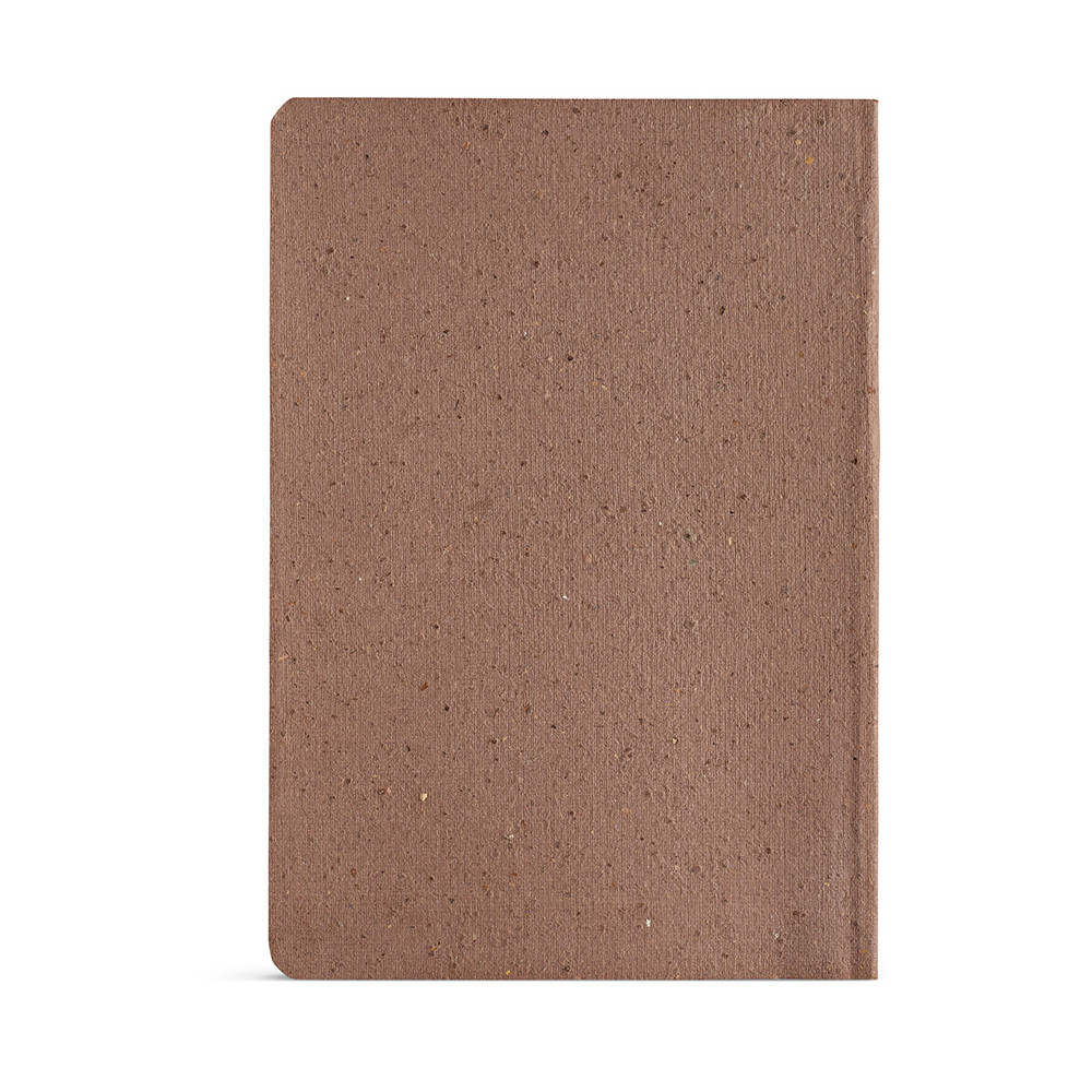 Doyle A5 notebook with its unique Coffee cover. This notebook features 196 recycled 80gsm dotted pages with a space to write down the date and page number, enclosed in a softcover. Stay organized with a practical notepad that adds convenience to your creative journey. Supplied in an individual kraft sleeve.