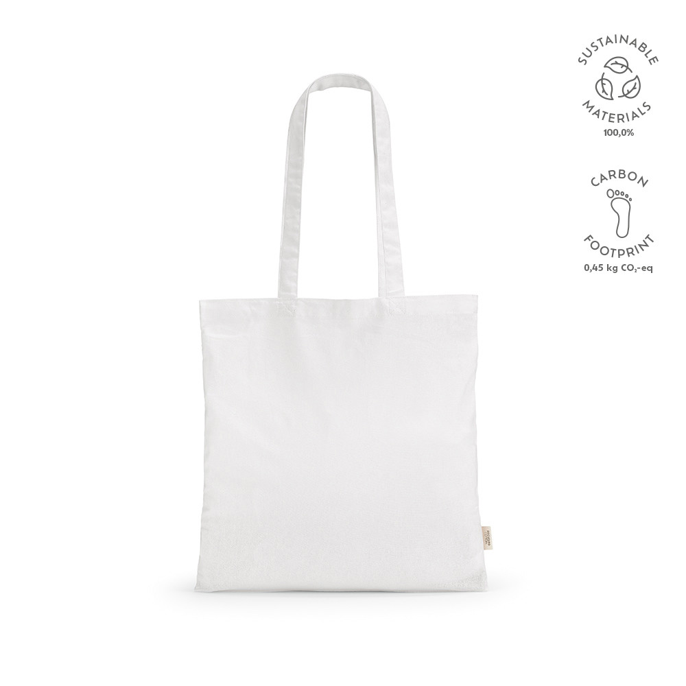 Everest Tote Bag, made from 70% recycled cotton and 30% recycled polyester 140gsm. This lightweight features 65cm handles and generous dimensions. 17 vibrant colours available to brighten your day. With a 11L capacity, this bag can carry loads of up to 10kg. Dimensions: 38x40cm.