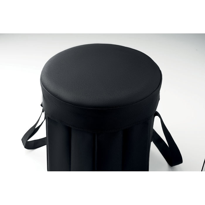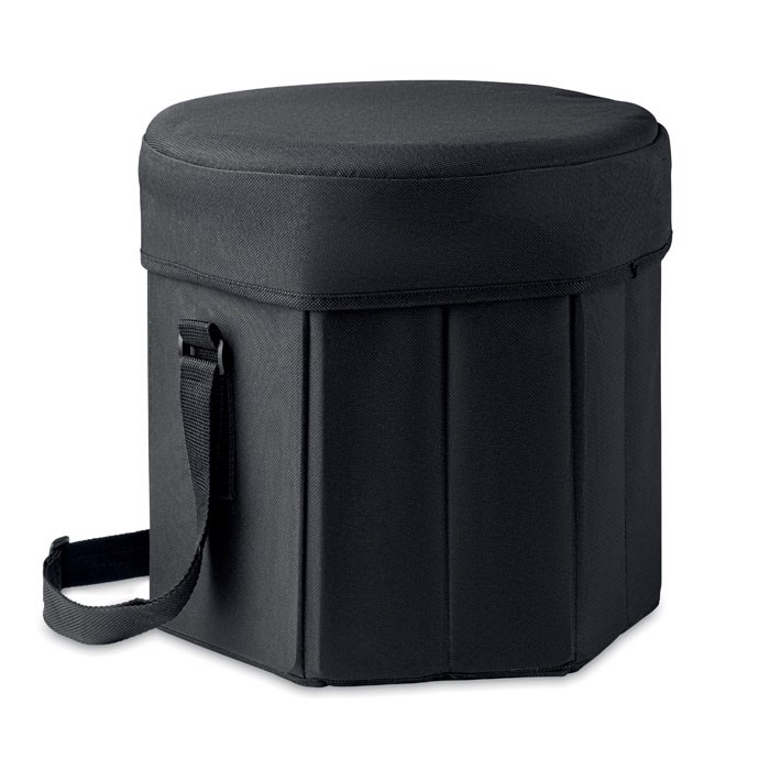 600D polyester foldable seat or table with insulated cooler bag with aluminium foil and carrying strap. Maximum weight 80 kg.