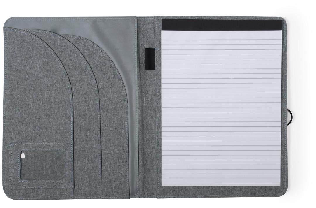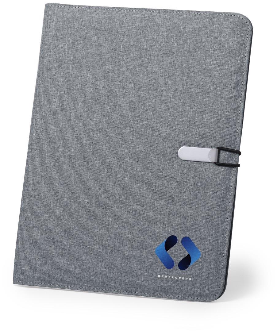 Elegant folder in bright tones. In soft microfiber, with elastic band metal closure especially designed for laser printing. Inside with notepad of 20 blank sheets, 3 flap pockets, card holders and pen holder. 20 Sheets Notepad