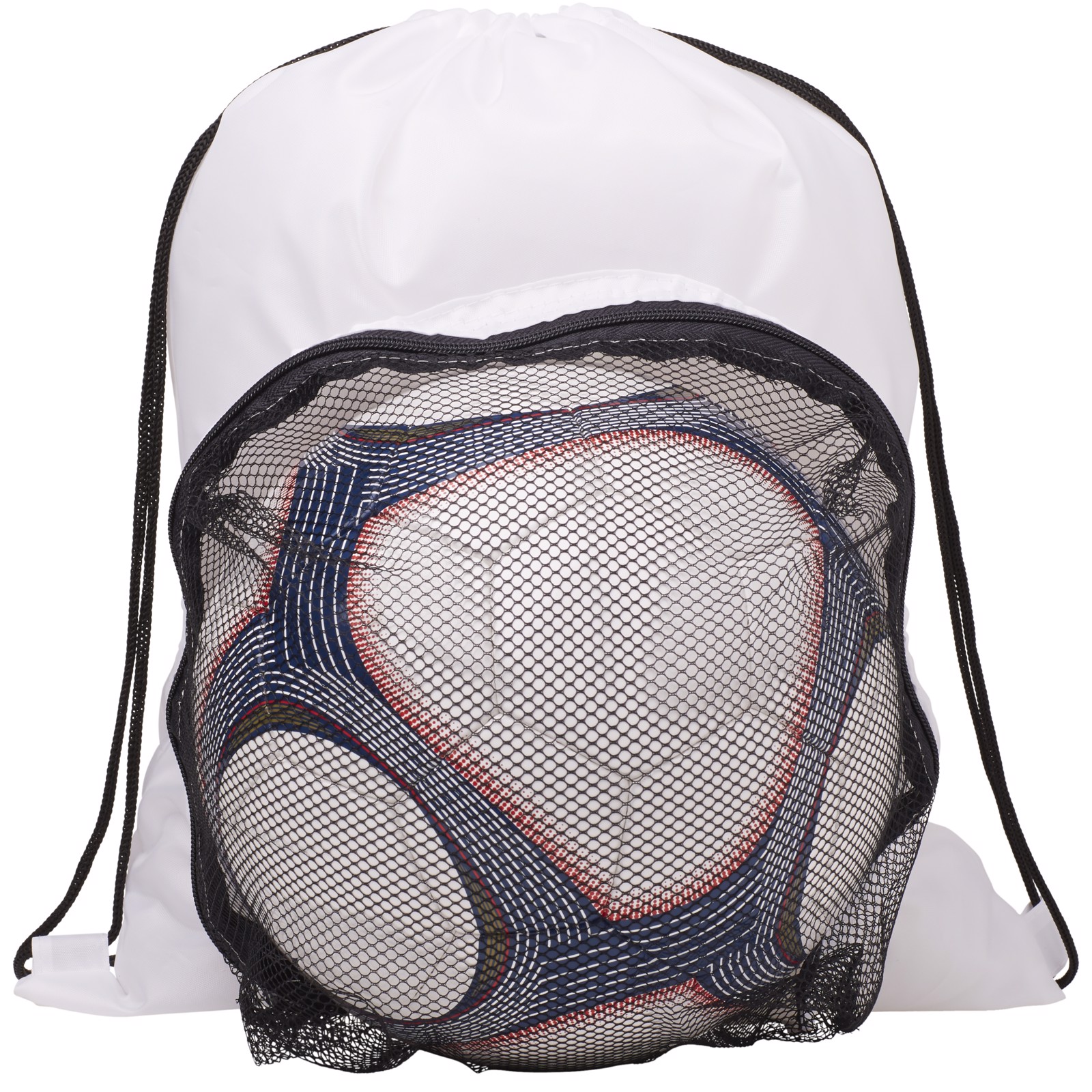 Large main compartment with drawstring rope closure. Front compartment for soccer ball storage. .